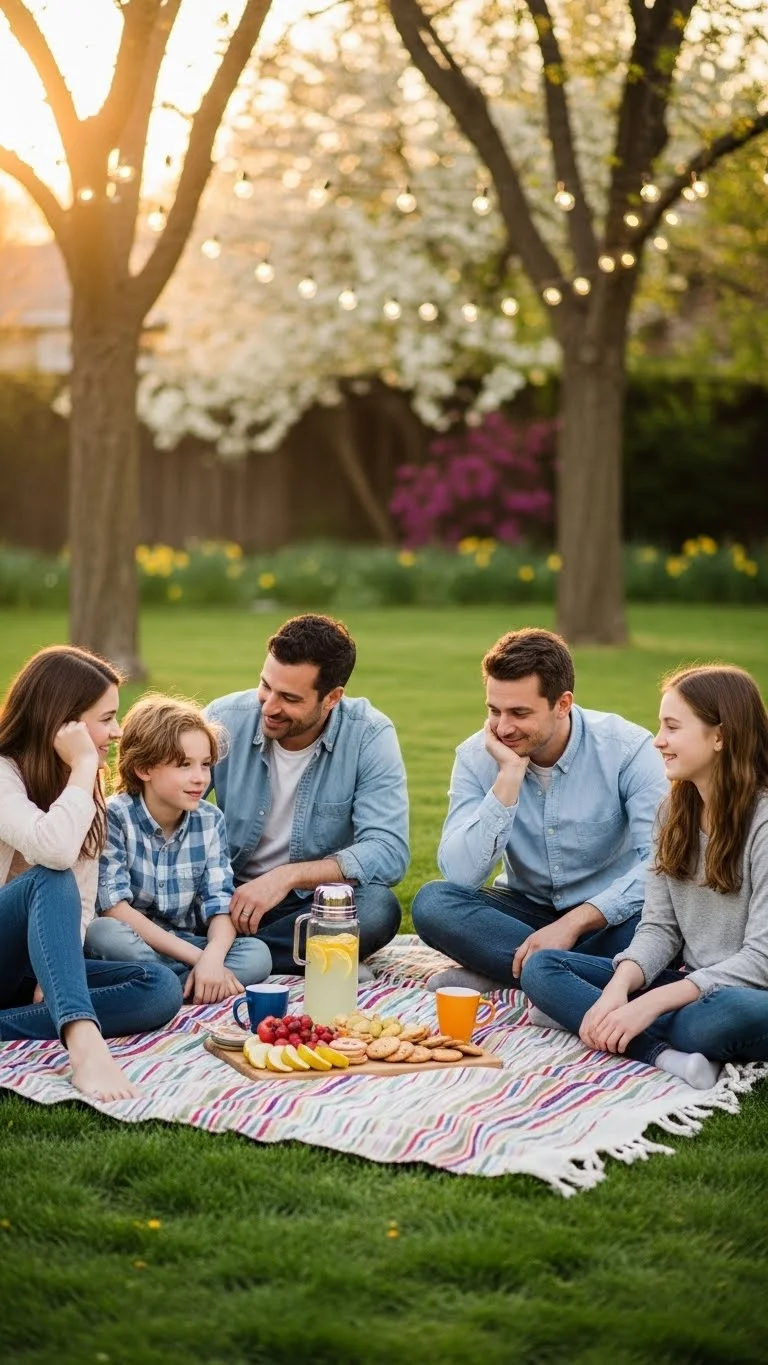 Create a quick picnic right at home. Lay out a blanket, grab sandwiches, fruit, or leftovers, and keep things relaxed. Kids often enjoy choosing their own picnic items, so let them pick a snack or help pack a small basket. If bugs worry you, add citronella candles or sit near a door for easy in-and-out access. Keep toys close for younger kids who need movement. Light conversation works well here—ask each person to share a fun moment from the day. If you want to add something extra, bring a small speaker and play calm music. Use mismatched plates and cups to save money. Reuse things you already have instead of preparing something fancy. A picnic like this encourages everyone to slow down without leaving the house. You might repeat it weekly to create a simple tradition. Even on busy days, spending 30 minutes outside together shifts the mood and brings everyone closer. The goal is comfort, not perfection.