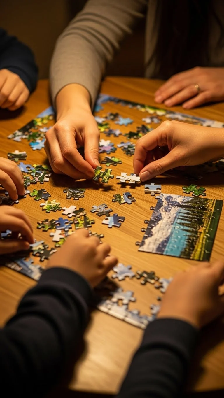 Choose an easy puzzle so nobody feels overwhelmed. Start with 100–300 pieces depending on attention levels. Spread the puzzle on a table and work on it a little at a time. If you want a budget-friendly option, buy a puzzle from a secondhand store. Play calm music while working and talk casually about your day. When someone finds a matching piece, celebrate the small win. Leave the puzzle out for a few days so everyone can add pieces whenever they pass by. It becomes a shared project with no pressure.