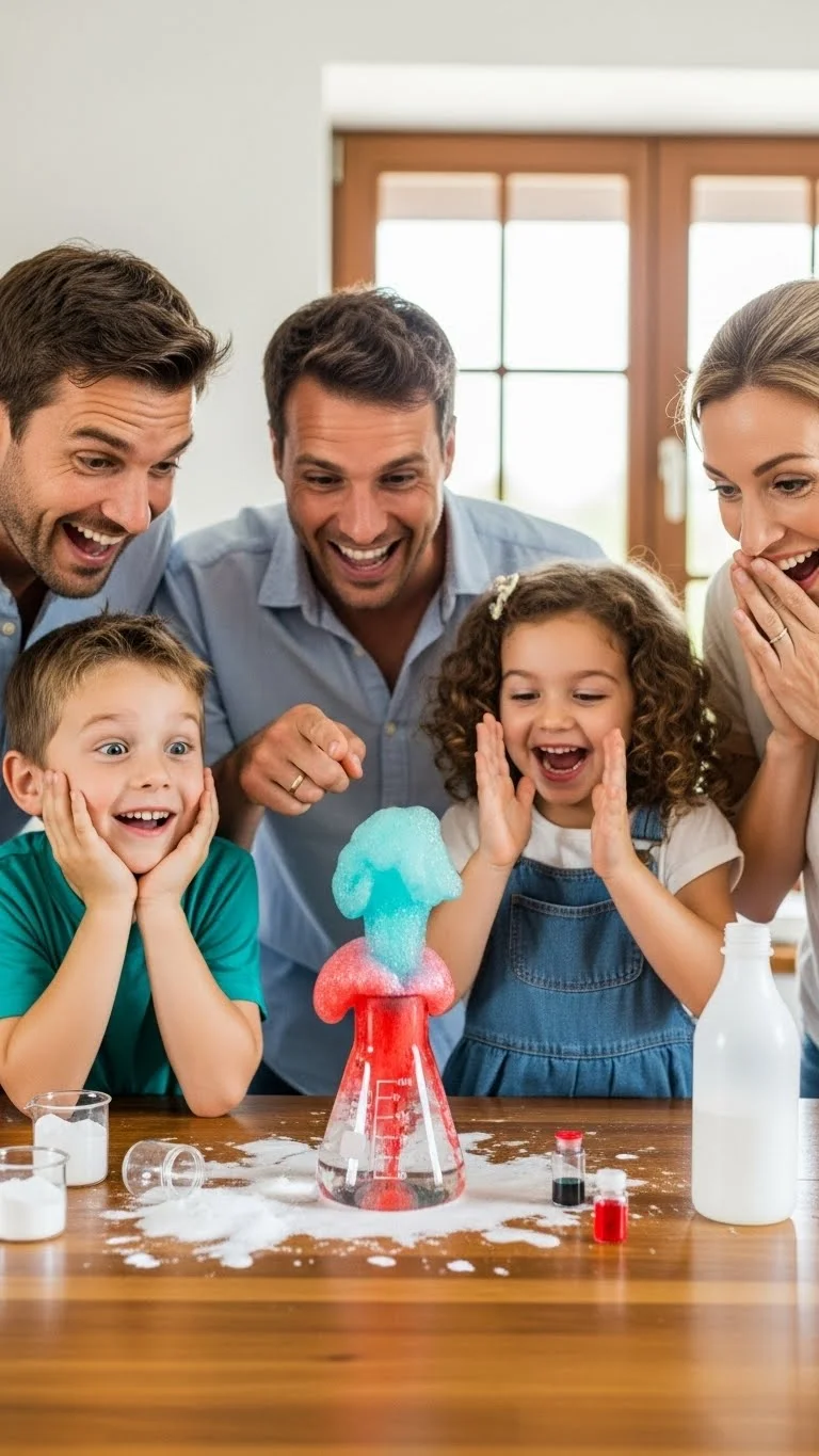 Do tiny science activities using items you already have. Baking soda and vinegar make easy fizzy reactions. Mix a little coloring for fun. Keep mess small by doing it in a tray or pan. Kids love watching reactions and asking questions. Adults can join in by guessing what will happen next. These experiments cost little and take only minutes. Afterward, talk about your favorite part. The activity brings curiosity and shared laughter without needing complicated supplies.