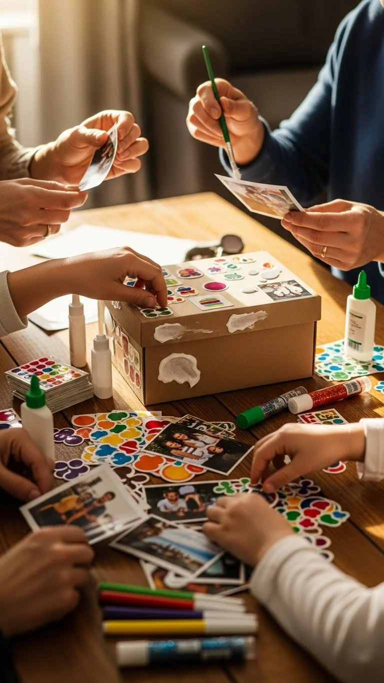 Grab an old shoebox and decorate it with paper scraps, stickers, or drawings. This becomes your family memory box. Everyone adds small items: ticket stubs, notes, drawings, or tiny objects that matter to them. You don’t need fancy craft tools—glue, tape, and markers work fine. Kids enjoy choosing what to include. Check the box together once a month and talk about the memories. It becomes a simple habit that keeps family stories alive without spending money.