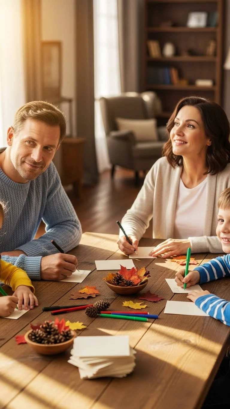 Sit together and write cards or notes to friends, relatives, or neighbours. Cards can be simple—folded paper works fine. Encourage short messages: “Thinking of you” or “Hope your week is going well.” Kids can draw instead of writing. Deliver cards by hand or leave them in mailboxes. Writing together helps everyone think about others in a warm way. Keeping supplies in a small box makes this easy to repeat anytime.