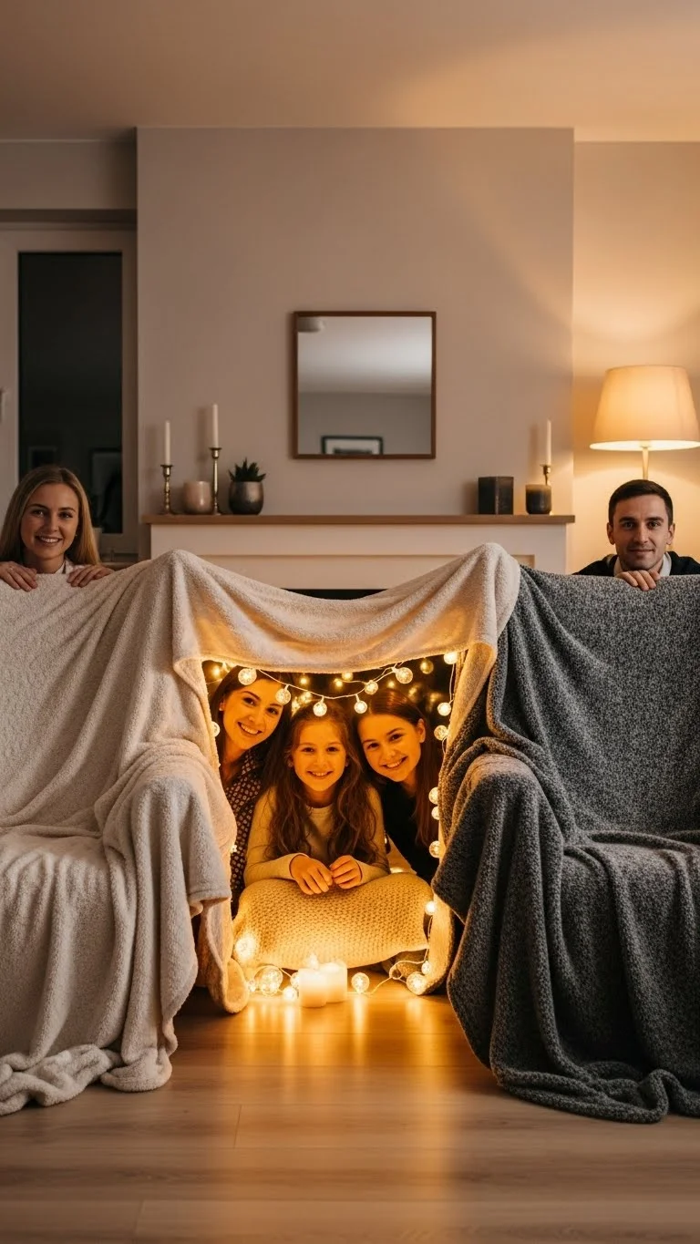 Use blankets, pillows, and chairs to make a simple indoor tent. Kids love being “in charge” of placing cushions. Keep things safe by avoiding tall stacks or heavy items. Once the fort stands, bring in storybooks, snacks, or a small flashlight. If blankets slide, secure them with clothespins or chip clips—cheap and easy. Adults can join inside or sit nearby with tea. The point is creating a cozy shared space away from the usual routine. This works especially well on rainy days when outdoor plans fall through. Afterward, take a quick photo to remember the moment. Clean-up stays simple when you limit the fort to one area. These forts make ordinary days feel special.