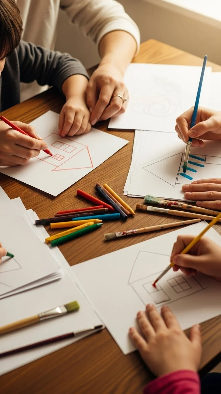 Set up a small art table using materials you already have: crayons, markers, scrap paper, or old notebooks. Encourage each person to draw anything they want—no pressure to be “good.” For low-cost options, use junk mail envelopes as drawing paper. Draw side by side and talk about your day while scribbling. Try quick prompts like “draw your mood” or “draw a happy place.” Kids often share more when their hands are busy. If mess worries you, stick to crayons and avoid paint. Keep clean-up supplies nearby so the end stays stress-free. At the end, place all drawings in a shoebox to create a simple family memory box. Art time gives everyone room to express themselves quietly together.
