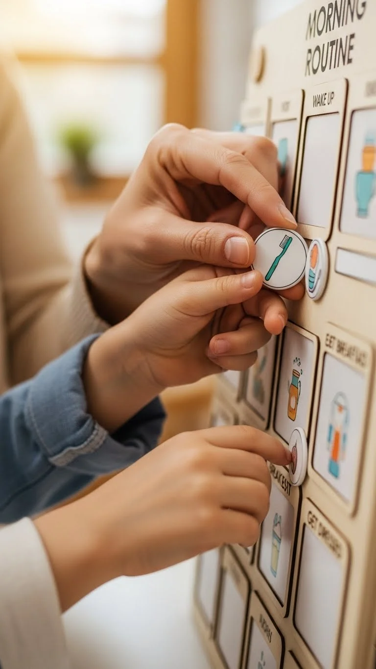 A morning rhythm chart works well for kids who get overwhelmed by long to-do lists. Keep it simple. Add tasks like get dressed, brush teeth, and eat breakfast. Use magnets, clothespins, or small picture cards. You don’t need anything fancy. A baking sheet and printed images work fine. Place it low so kids can reach it. Let them flip or move each task when finished. This gives them a sense of order without extra pressure. Stick to just a few steps so they don’t get frustrated. If your mornings are rushed, prep outfits and lunch the night before. This makes the chart easier to follow. Keep the tone light and use plenty of praise. When kids know what’s coming, mornings feel calmer for everyone.