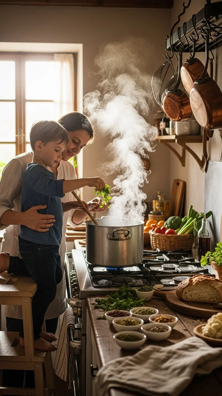 Kids enjoy helping when tasks feel manageable. Create a simple rotation where one child helps each night. They can wash veggies, stir, or set the table. Use a cheap stool so they can reach the counter. Keep knives away and choose tasks that are safe. Stretch the rotation across the week so each child gets predictable turns. This builds routine and reduces arguments over “who helps tonight.”