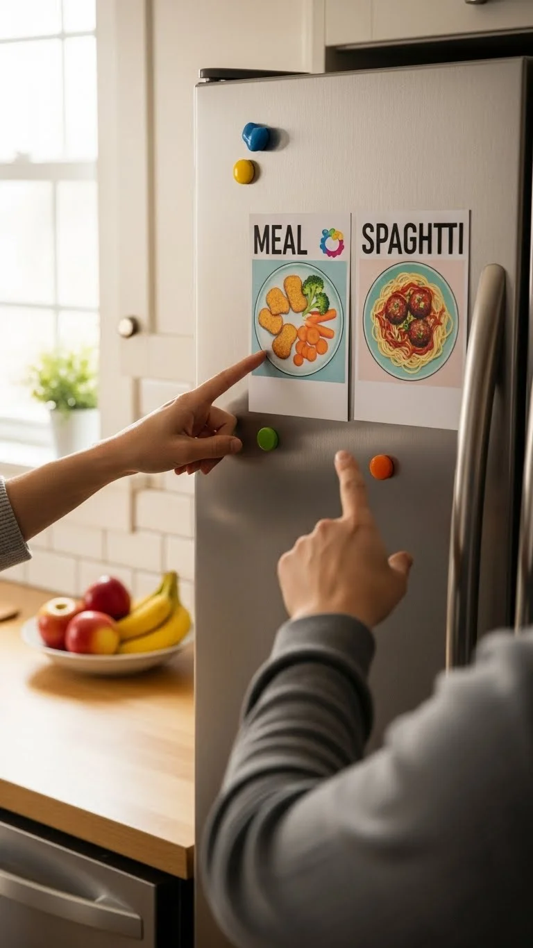 Offer two dinner choices rather than asking open-ended questions. Use picture cards or sticky notes. Stick them to the fridge each morning. This cuts down on complaints at dinnertime. Choose low-cost meals that share ingredients. For example, tacos or quesadillas. Pasta or stir-fry. Kids feel included without overwhelming them. Rotate options weekly to keep things predictable.