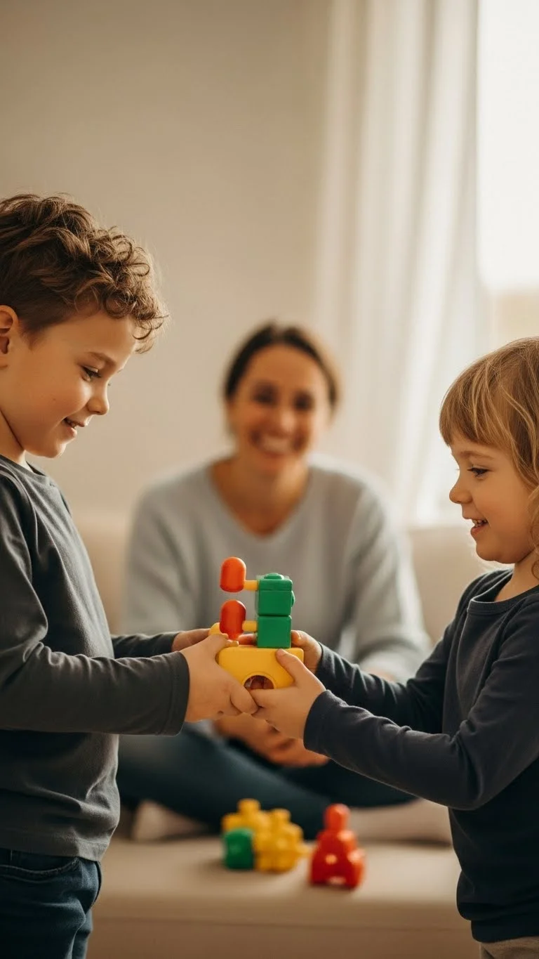 Set 10-minute blocks where siblings swap play spaces or toys. This reduces fighting and encourages sharing. Use a small bell or timer to signal the switch. Keep the toys simple and safe. Rotate bins weekly so things feel new without buying more. Kids enjoy predictable turns. It keeps the home calmer.