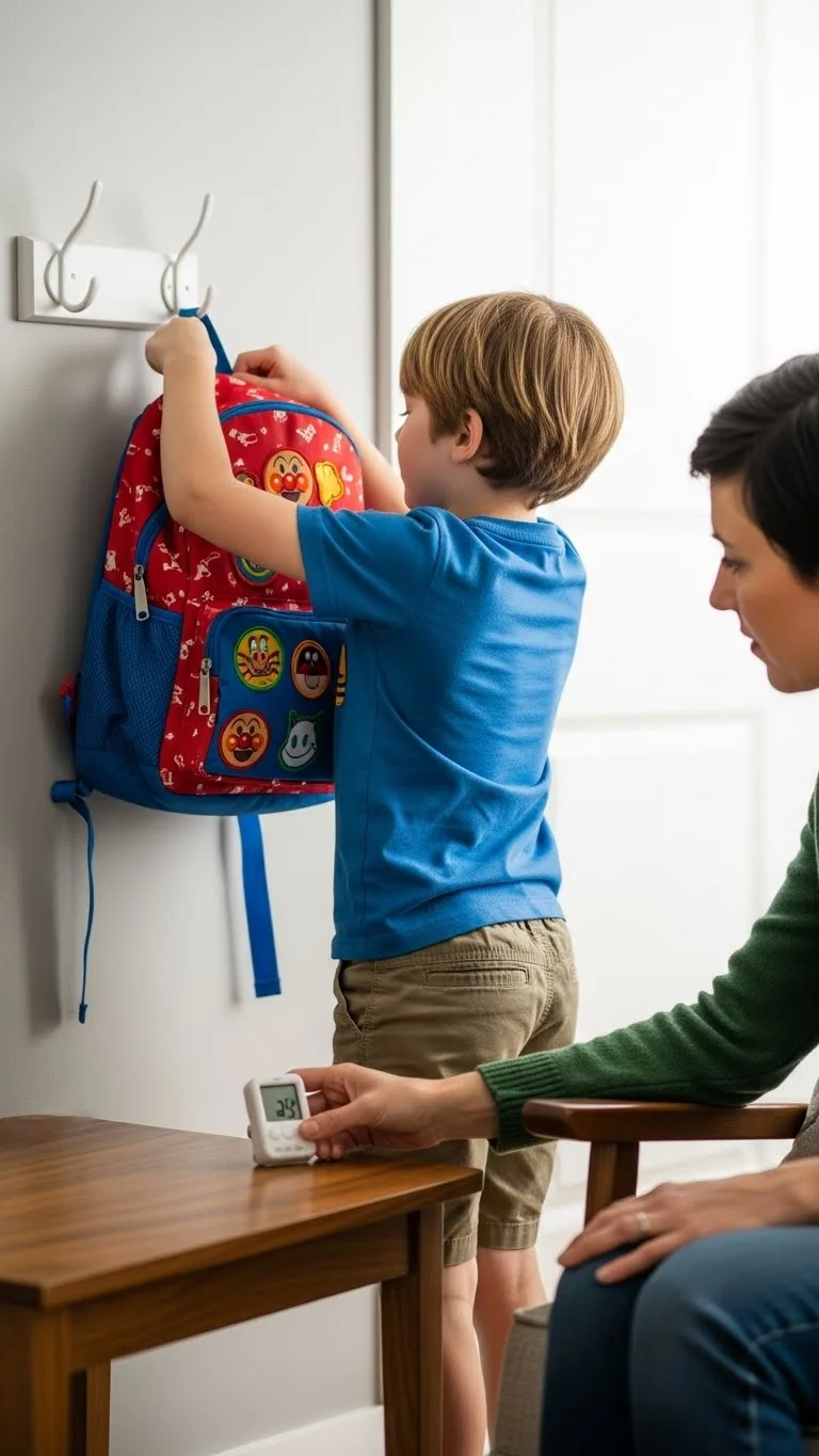 Create a short reset block right after school. Ten to fifteen minutes is enough. Kids can hang backpacks, grab a snack, and settle their minds. This short break helps them shake off the day before you ask anything else of them. Use a bowl for keys, a hook for bags, and a bin for shoes. These simple stations make the routine easy to follow. You can even place a small timer on the counter so kids know when it ends. Let them choose their snack from two options to cut down on debates. Keep the area clutter-free so the routine doesn’t feel like extra work. This reset helps afternoons feel smoother and sets everyone up for homework or free time.