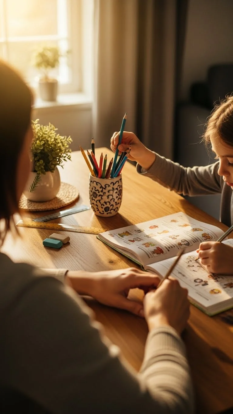 A homework power block takes pressure off busy nights. Pick the same time most days, like 4:00 or 4:30. Keep supplies in a small caddy so you don’t hunt for pencils. Set a calm mood by turning off loud toys or music. If your child gets frustrated, break the work into tiny segments. Five-minute chunks work well. Let them stretch between segments. Use snacks that aren’t messy, like apple slices. This keeps fingers clean for writing. Place a small lamp on the table for steady light. Try not to hover. Check in only when needed. A consistent schedule helps kids settle quickly and finish sooner.