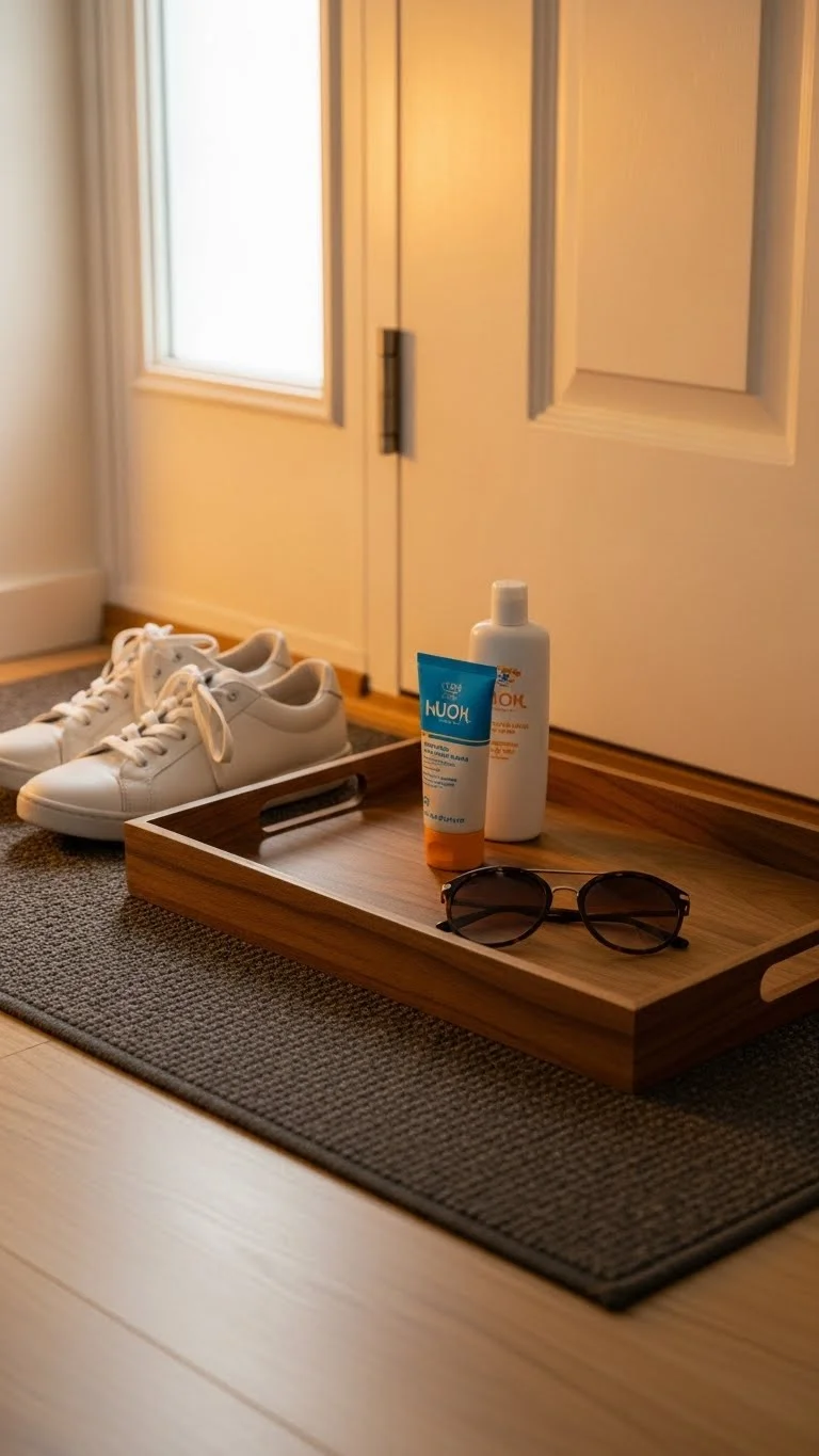 Set up a tray near the door with items you always forget. Sunscreen, hats, socks, or small snacks. This saves time and avoids last-minute panicking. Keep it simple so it doesn’t look cluttered. A thrifted tray works fine. Add a small basket under it for shoes. Label nothing; let the visual setup speak for itself. Refresh the tray every Sunday night. When everything is in one spot, leaving the house feels less chaotic.