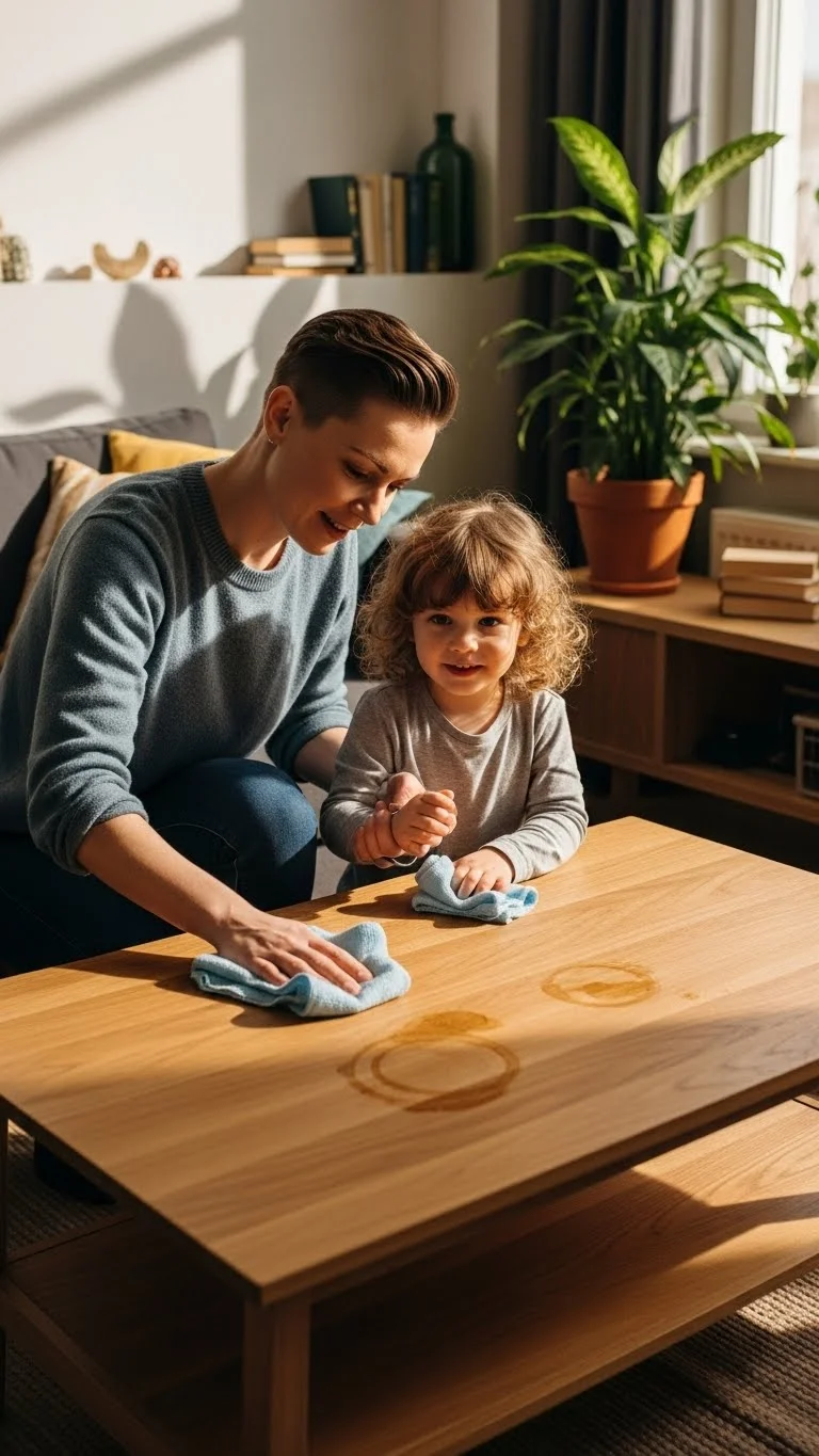 A five-minute chore sprint helps keep the house in shape without draining energy. Pick one tiny task. Wipe a counter. Gather toys. Shake out a rug. Set a short timer and do it together. Kids love racing the countdown. Use old T-shirts as dust cloths. It saves money and reduces waste. Praise effort, not perfection. These little sprints add up and help evenings feel lighter.