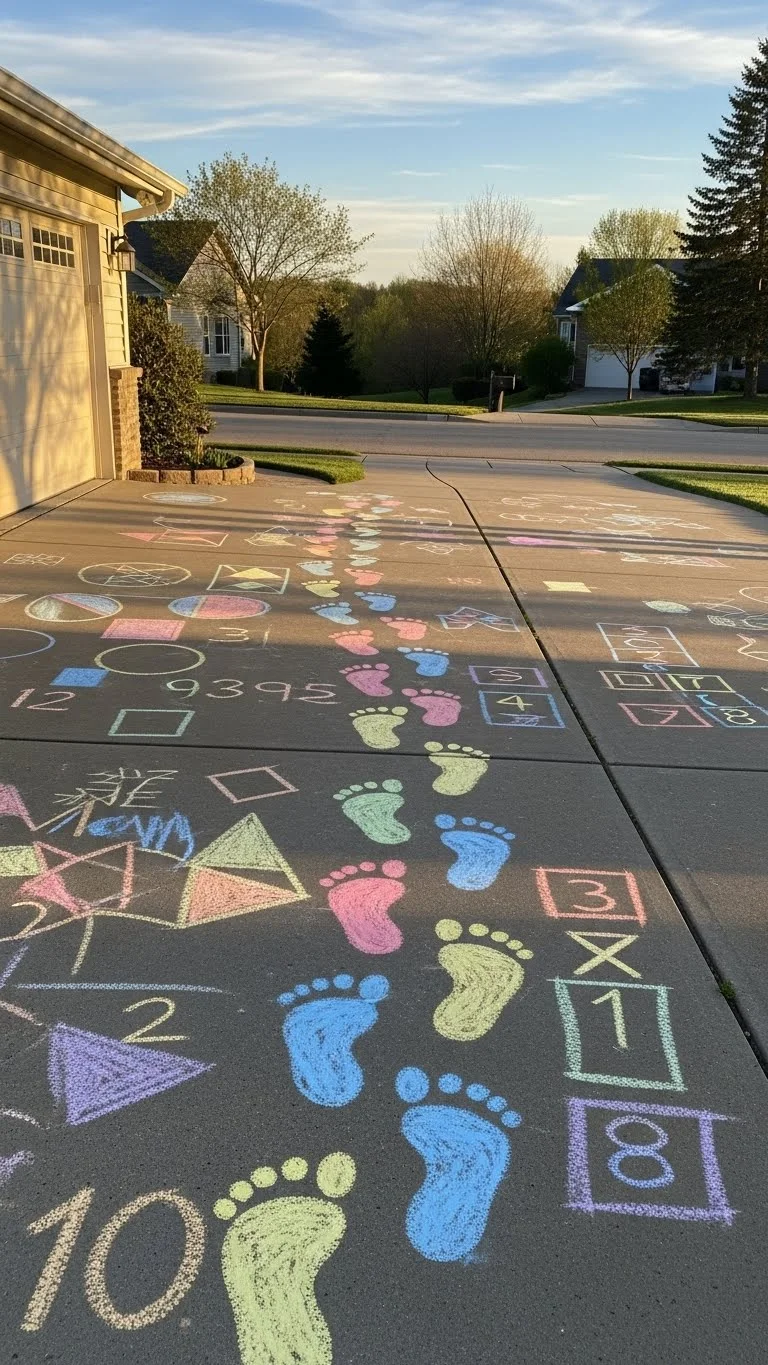 Draw simple shapes or numbers on a sidewalk or driveway. Tell your child to hop to a specific number or color. Keep the maze small. Add new shapes each time. Chalk activities are quick to set up and easy to wash away. They help kids get energy out while staying close to home.