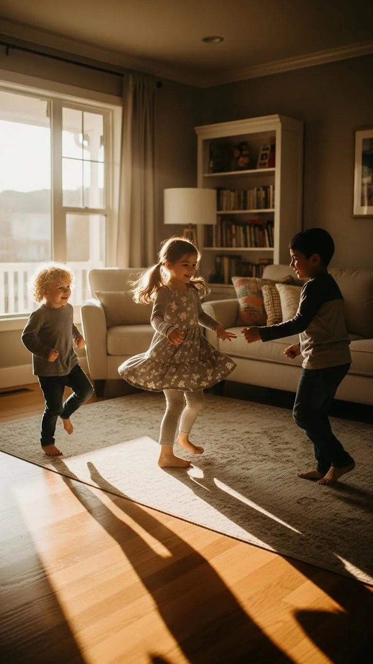 Play a song and dance until you pause it. Everyone freezes in place. Start again when the music resumes. Keep rounds short and silly. This movement break resets energy during long homeschool days. It works in small spaces and needs no supplies.