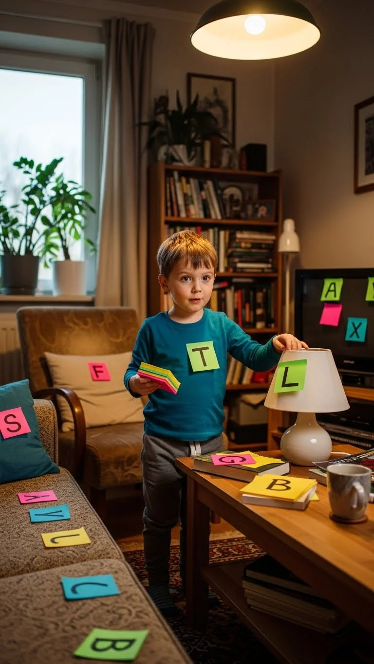 Write letters on sticky notes. Place them around the room. Ask your child to find objects that start with each letter. Keep the game short, maybe five letters at a time. This helps with early reading practice in a relaxed way.