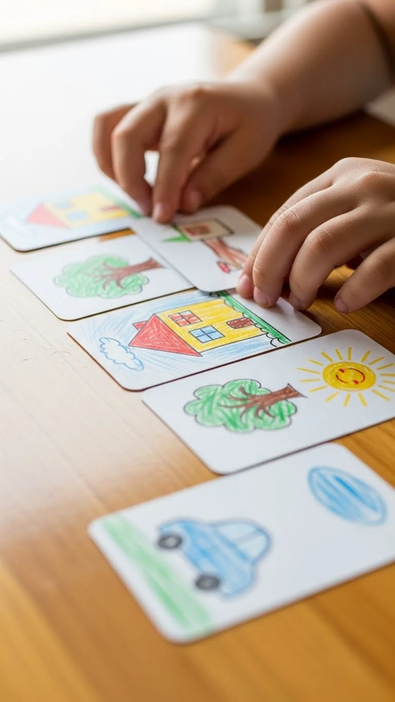 Make quick story cards using index cards or cut-up cereal boxes. Draw small objects like a sun, a boat, or a cat. Keep the drawings simple. Shuffle the cards and pick three at random. Ask your child to create a small story using those images. Write it down or let them act it out. Add more cards over time. Store them in a rubber band so they stay together. This activity sparks imagination without pressure. It also turns scrap materials into something fun.