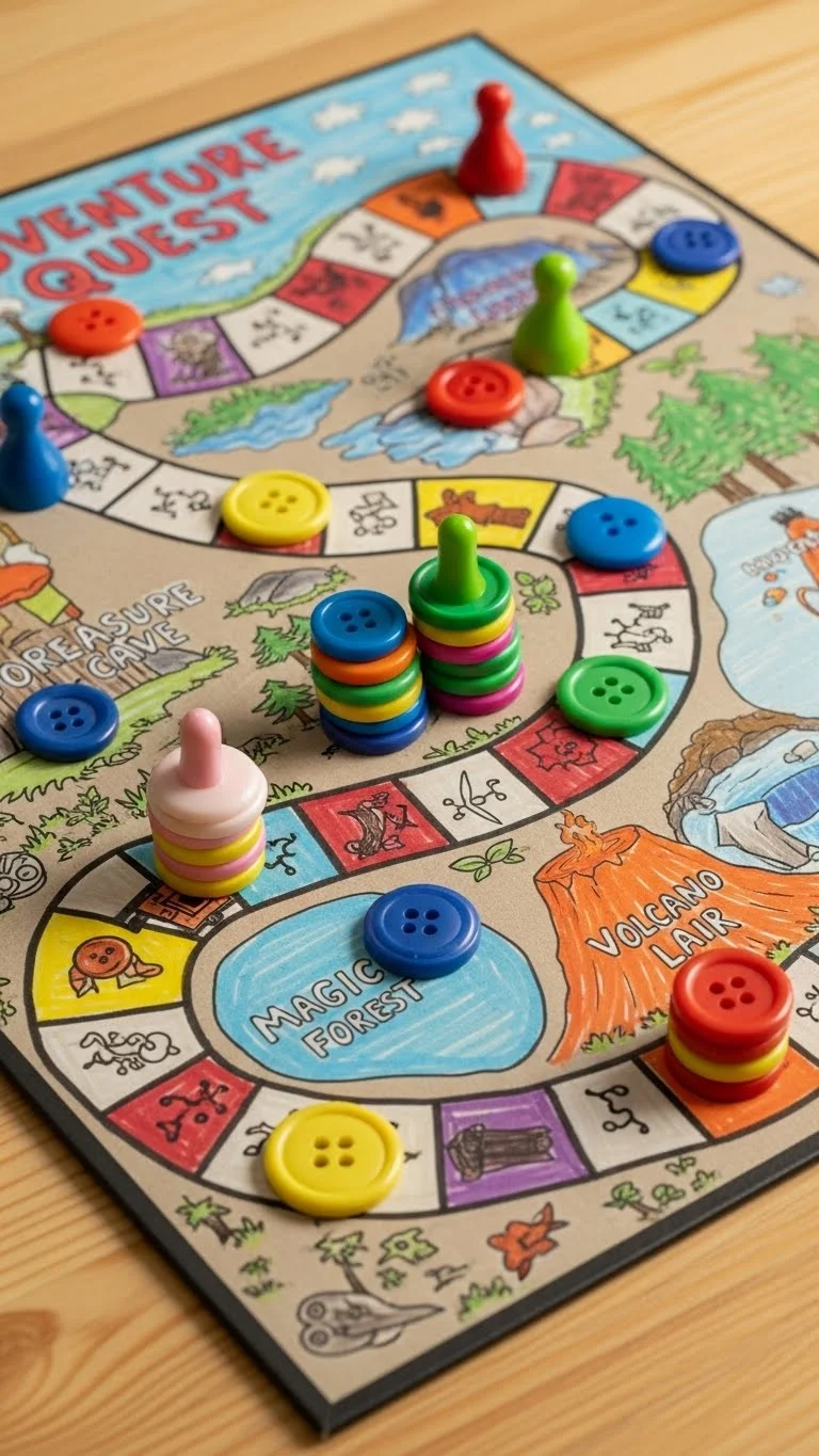 Grab a piece of cardboard and draw a simple path. Add a start and finish. Use buttons or coins as markers. Kids can draw obstacles or silly spaces. Keep rules short so the game stays easy to use. Try the game right away, even if it looks uneven. It can be improved later. This project turns recycled materials into hours of play.