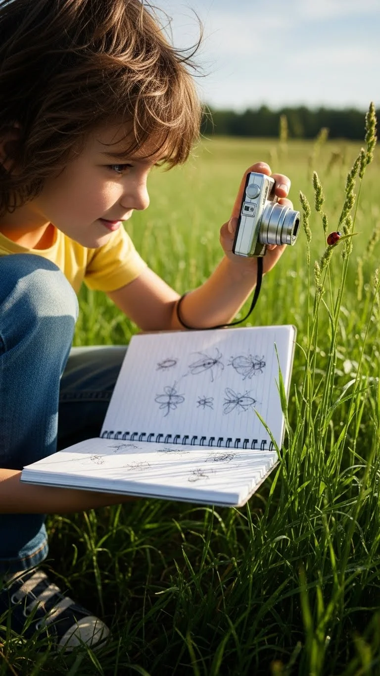 Give your child a pocket notebook and step outside. Look for tiny insects under rocks or leaves. Observe quietly for a few moments. Sketch what you see. Add simple labels like “red legs” or “striped body.” Keep the outing short so it stays relaxed. Use a phone to take close-up photos if your child prefers pictures over drawings. This activity works even in small outdoor spaces.