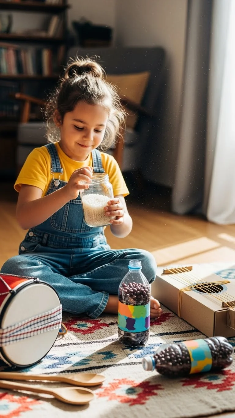 Use empty spice jars or plastic containers. Add rice, pasta, or beans. Tape the lid closed. Let kids decorate with stickers or markers. Shake them to create different sounds. Try slow beats or fast beats. Turn on a favorite song and play along. This activity encourages movement and creativity using items you already have.