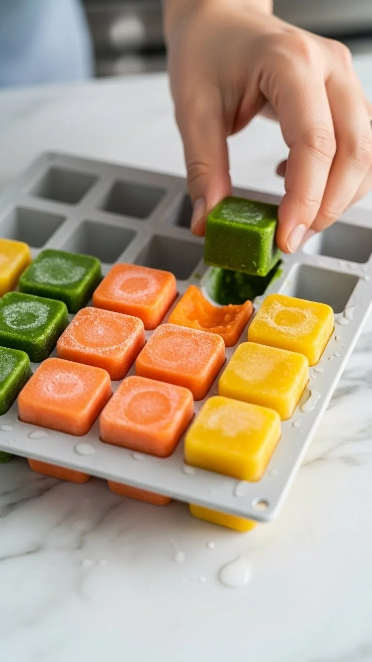 Batch-cooking veggie purées is one of the easiest ways to keep meals simple during the week. Steam carrots, peas, or squash until soft. Blend with a little warm water. Pour into silicone trays and freeze. It helps to make small batches so nothing sits too long in the freezer. Use whatever vegetables are already in your fridge to keep costs low. A single tray can last for days and works well for mixing flavours. Pop out one or two cubes at mealtime and warm them gently. You can also mix these cubes into grains for older babies who want thicker textures. This approach keeps cooking light and affordable, especially when you choose seasonal produce. It also makes portioning easier, so you never waste food. Store cubes in labelled bags to stay organised. Grab and warm whenever you’re short on time.