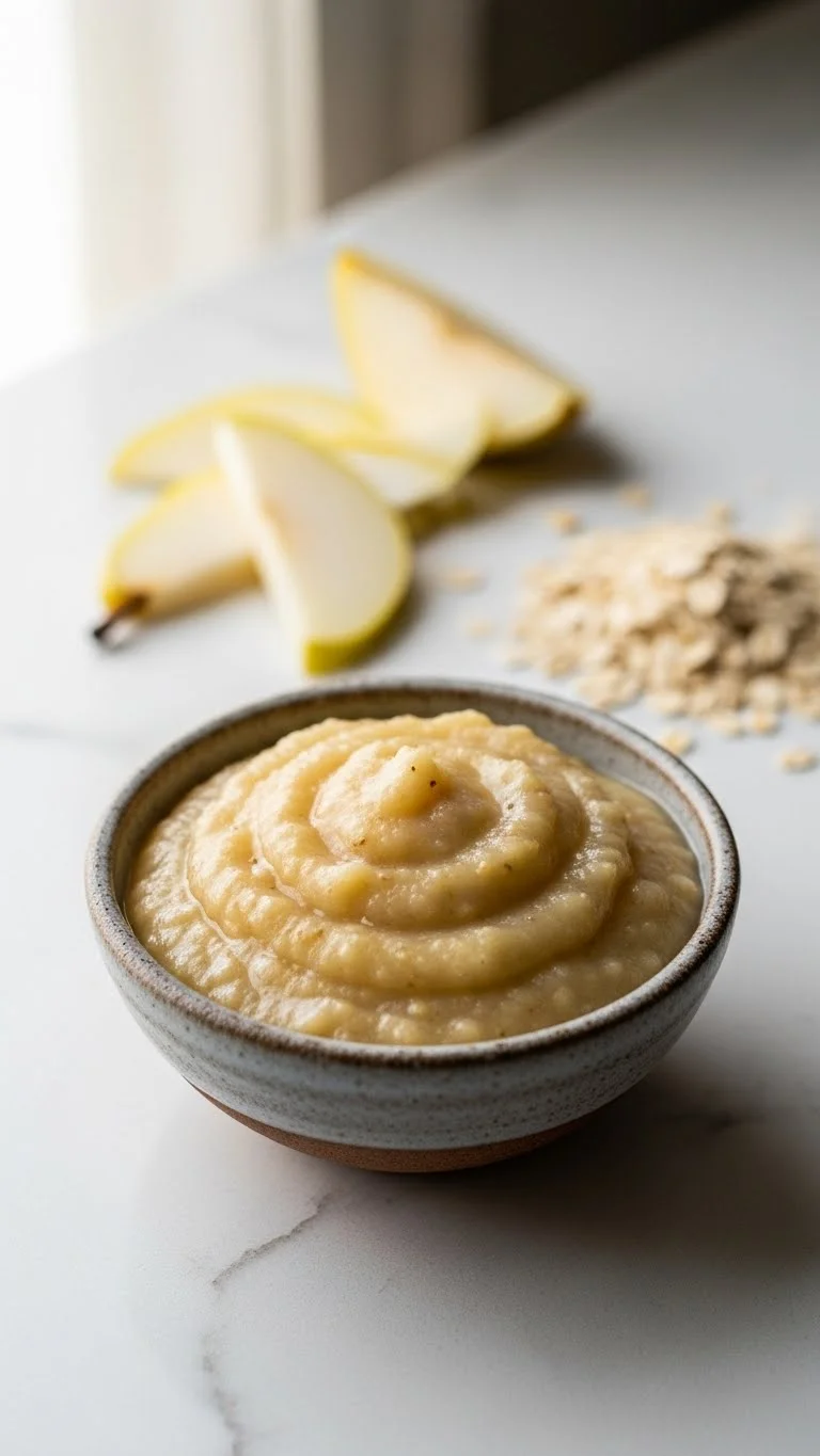 Cook peeled pears until tender. Blend with cooked oats and water for a creamy texture. This mix works well for breakfast or a light snack. Pears are often inexpensive, especially in bulk. Make a big batch and chill in jars for two days. Warm gently before serving. Add a spoon of mashed banana for extra softness if desired.