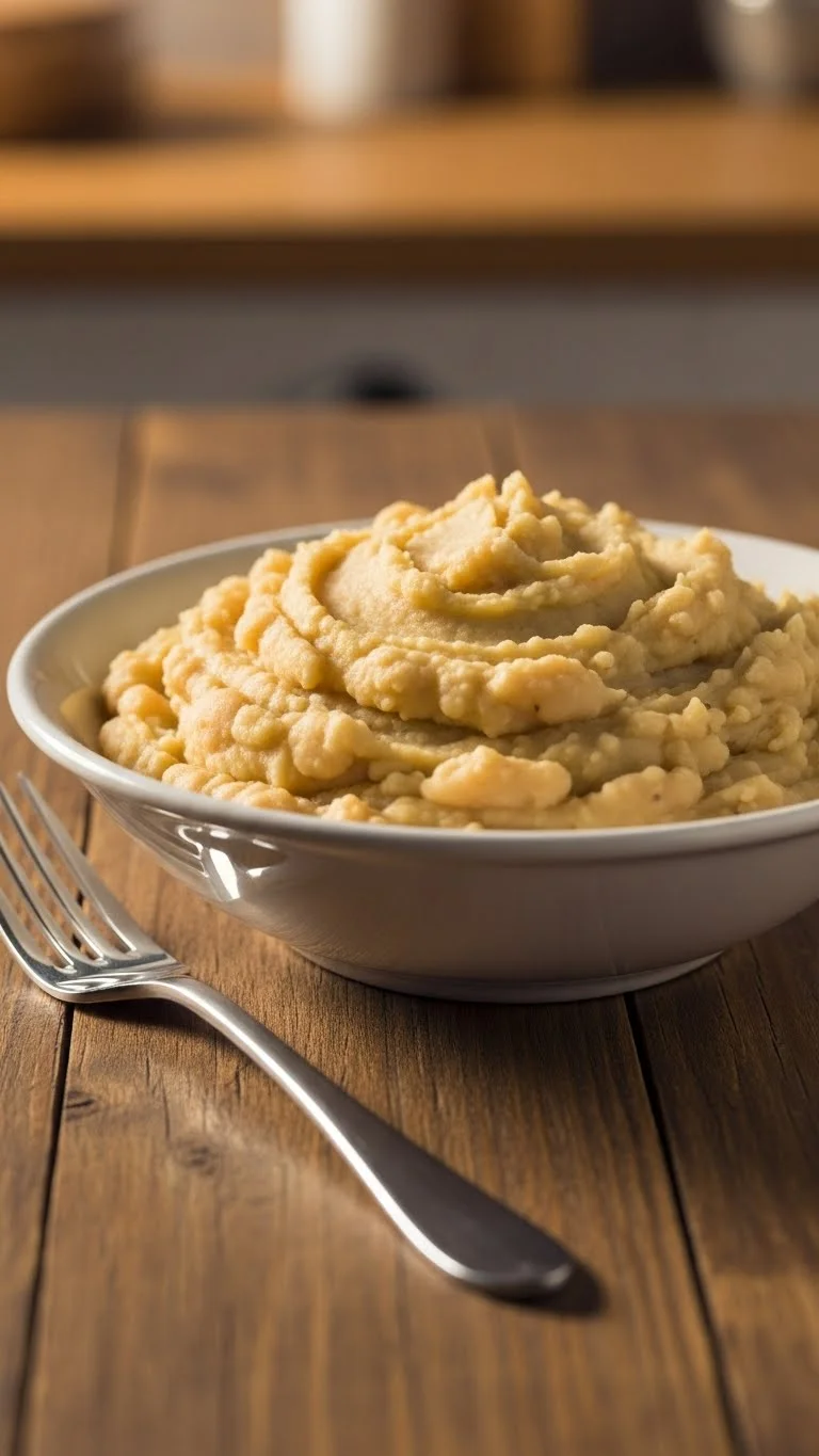 Boil potatoes until very soft. Mash with warm water for younger babies. Potatoes are inexpensive and last long in the pantry. Prepare a medium-sized batch and store it in several jars. This simple base works with veggie purées or chicken mash. Warm gently before serving so it stays soft.