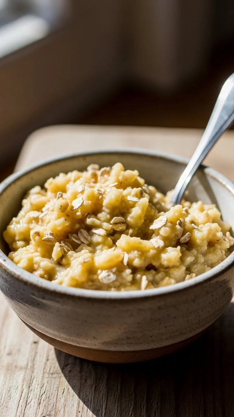 Mash one ripe banana and mix with a spoonful of cooked oats. This quick recipe works well for last-minute meals. Bananas are cheap and always available. Prepare small batches because bananas brown quickly. Add a sprinkle of cinnamon for older babies. Serve warm or chilled. This is a perfect morning meal when time is short.