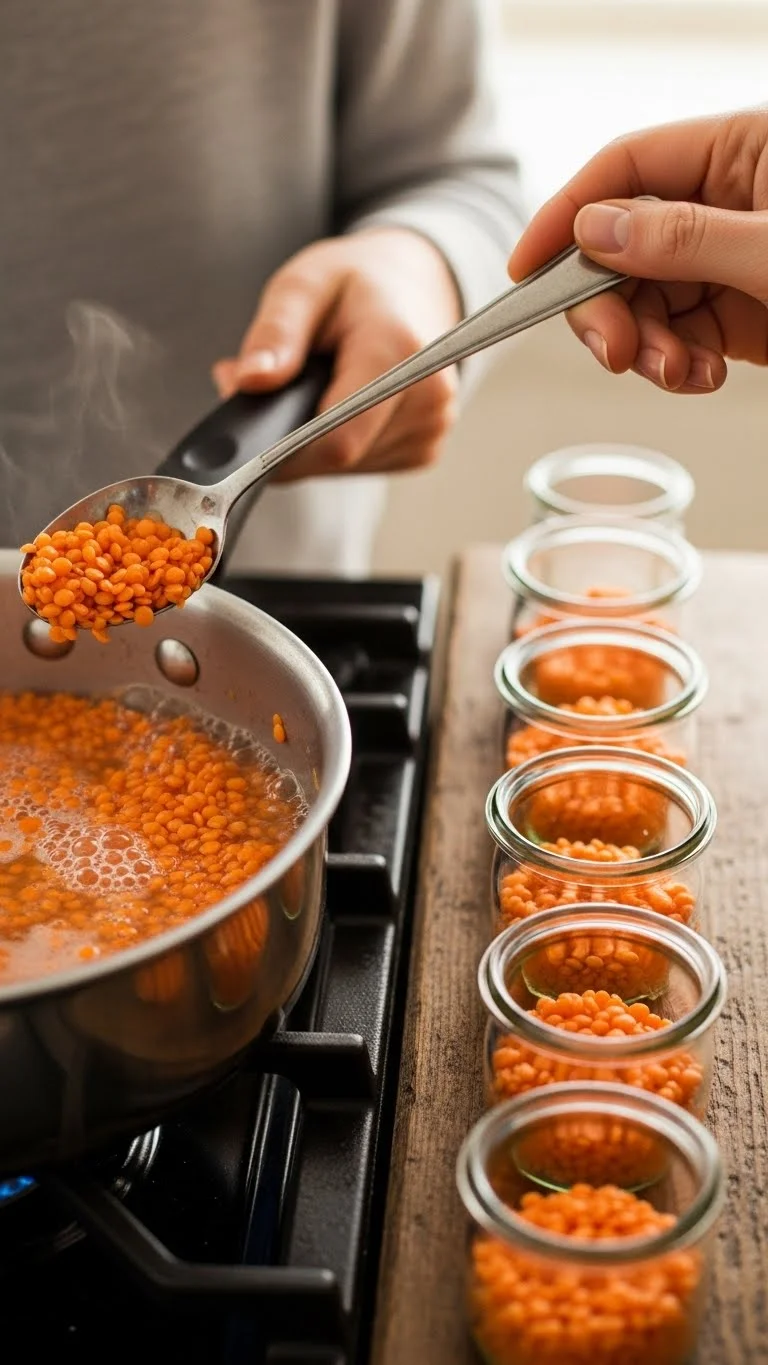 Lentils cook quickly and pair well with veggies for a smooth, mild meal. Rinse red lentils and simmer until soft. You can add carrots or zucchini during cooking so everything blends easily. Once done, spoon the mixture into small jars. These little pots keep well in the fridge for a few days. Use whatever vegetables you already have to cut costs. Red lentils are budget-friendly and very easy to prep in bulk. For babies ready for more texture, skip blending and mash lightly with a fork. Add a spoonful of mashed potato for creaminess if the mixture feels too thick. These pots reheat quickly and create simple meals that don’t take much effort.