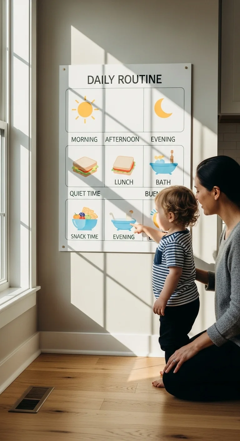 Repeat it calmly. Toddlers latch onto rhythm and tone more than meaning. Your steady voice becomes their anchor. This small habit creates predictability even in chaos, helping your child regulate faster.
