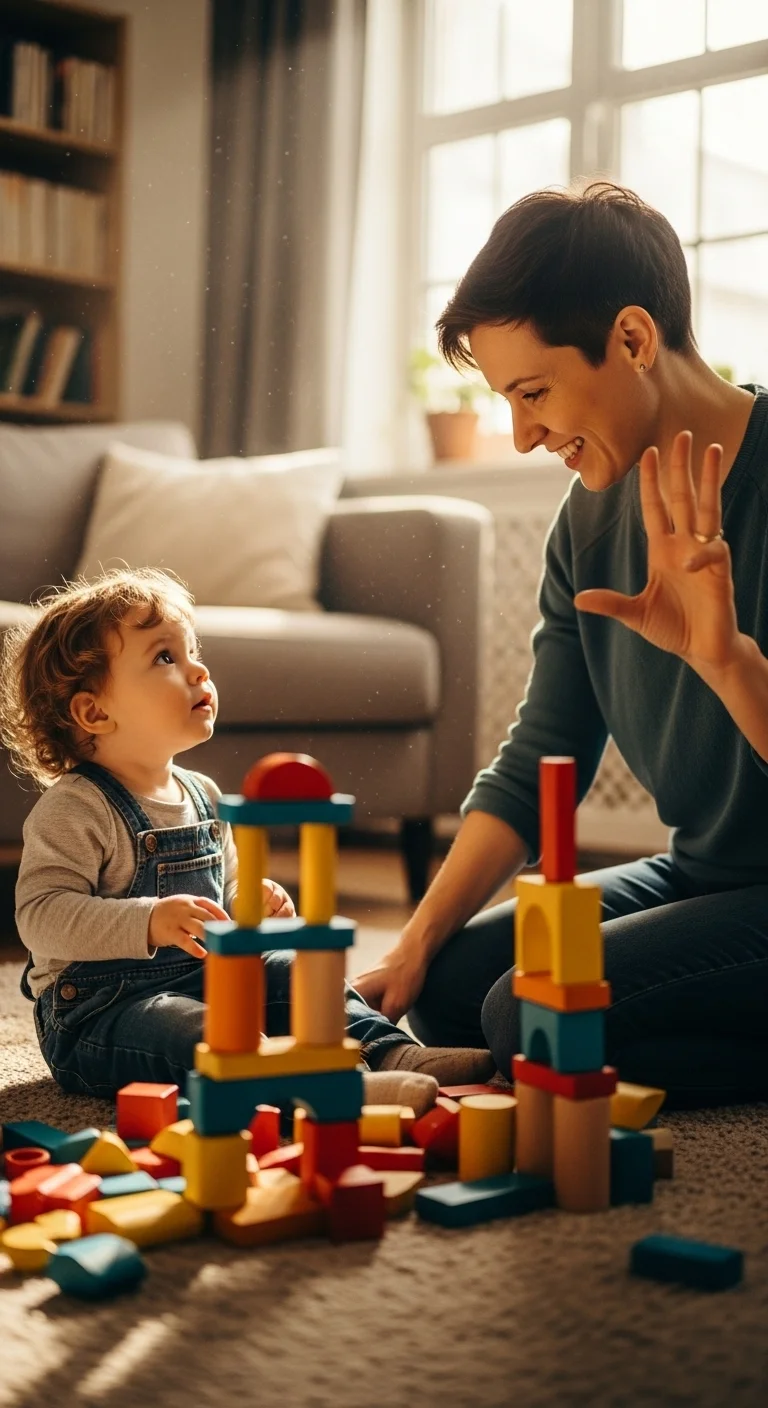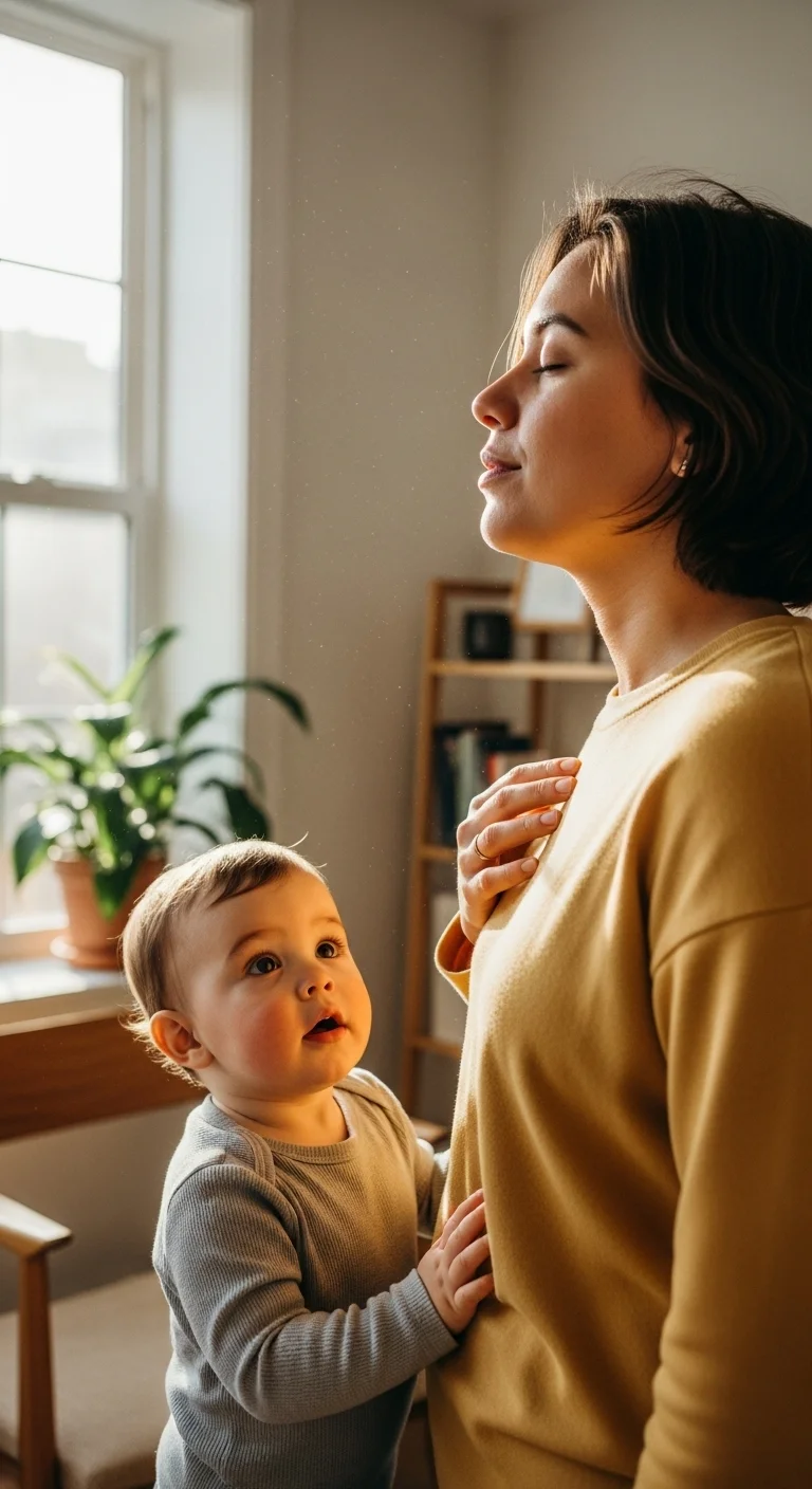 Toddlers learn more from what they see than what we say. When you feel frustrated, narrate a tiny moment of self-regulation: “I’m taking a slow breath.” Don’t overdo it—just show them one small calming action. This normalizes big feelings and models coping skills they can imitate. You don’t need to be perfect. Toddlers benefit most when they see calm in progress, not calm already mastered.