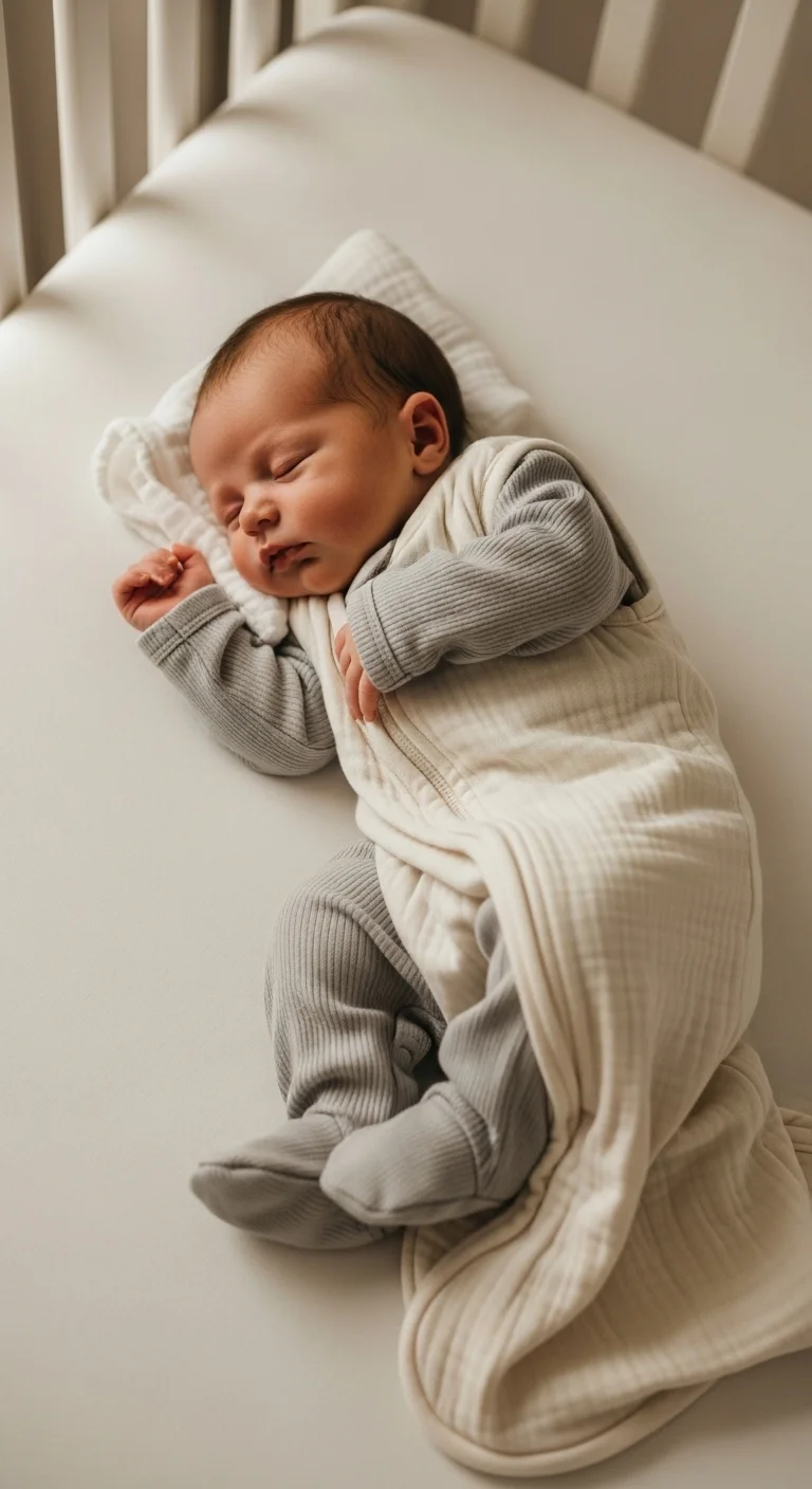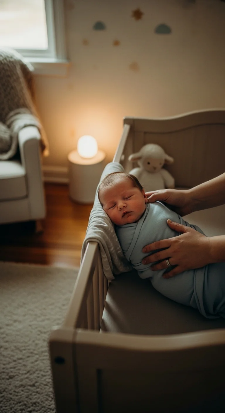 A clear crib helps your baby sleep more peacefully. No pillows, loose blankets, stuffed toys, or bumpers. These items can distract, overstimulate, or create safety issues. A simple fitted sheet is enough. Choose a soft breathable fabric you already have at home. The clarity helps your baby feel calm and gives them room to stretch and wiggle safely. If the room feels chilly, dress the baby in a warm sleep sack instead of adding blankets. This simple setup supports safer and smoother sleep for newborns without any extra cost.