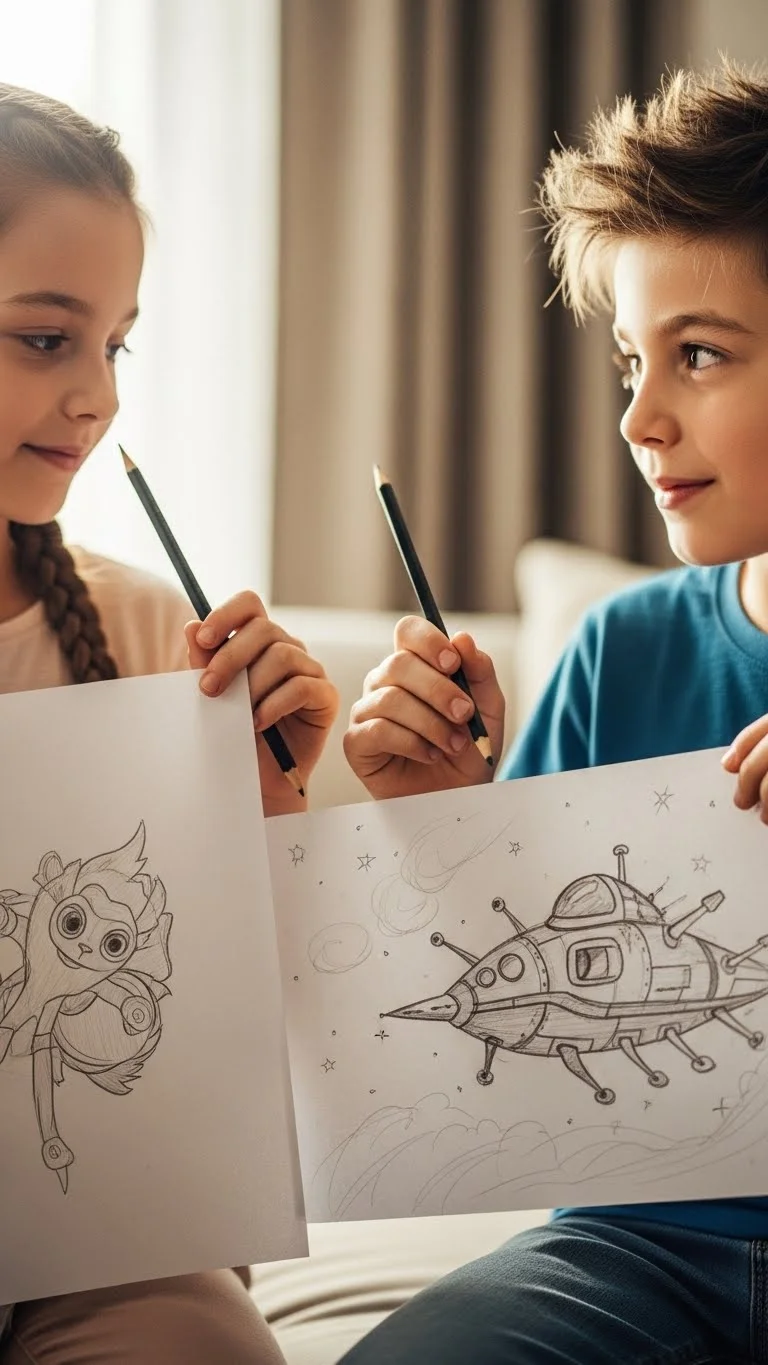 Kids love making stories, especially when they can shape the plot together. Give them a notebook and let one child draw while the other narrates. Then switch roles. Keep it simple—short scenes are enough. Use scrap paper or printer leftovers if you want to save money. Ask them to create a character together, which encourages compromise. When they finish, let them read it aloud to you. This activity builds imagination and strengthens connections through laughter and shared ideas.