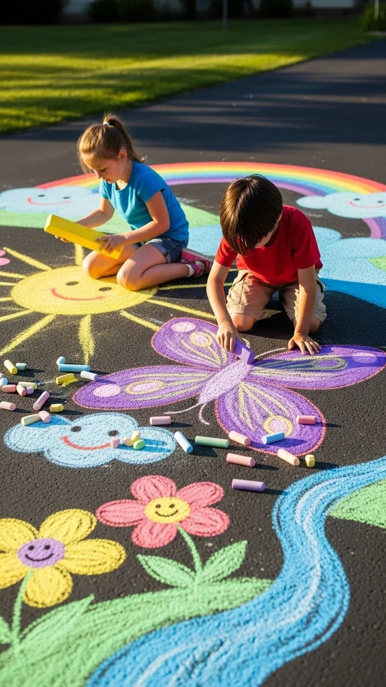 Give them a shared sidewalk space to create a big chalk mural. Let them choose a theme together—like a garden, space, or ocean. Provide a few chalk sticks to keep choices simple. They can each draw different sections that connect in the middle. This encourages teamwork without forcing identical styles. Chalk is low-cost, easy to clean, and fun for all ages.