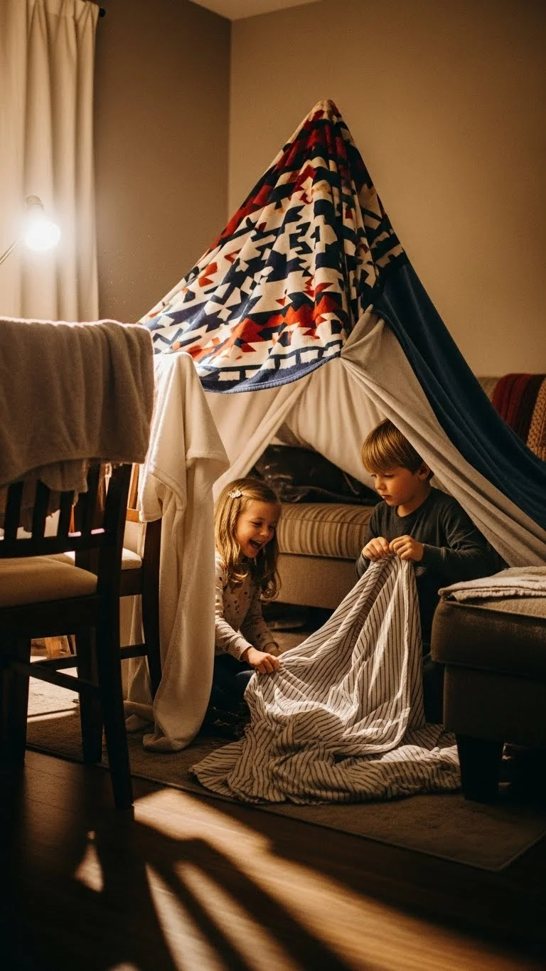 A blanket fort instantly creates a shared mission. Kids enjoy the building process because it feels adventurous. Use lightweight sheets, couch cushions, and chairs. Keep it safe and simple. Give them a “mission card,” like making a reading fort or a secret hideout. Let each sibling choose one building element so it feels fair. The fun comes from the teamwork, not the perfect structure. Keep costs low by using what you already own. When the fort is built, add pillows or a flashlight for storytelling. This small project encourages cooperation, patience, and shared problem-solving.