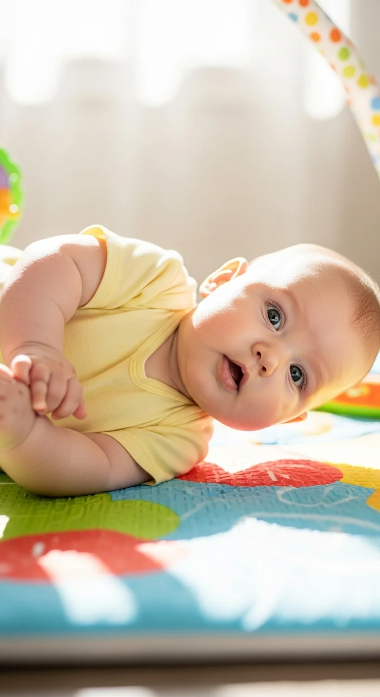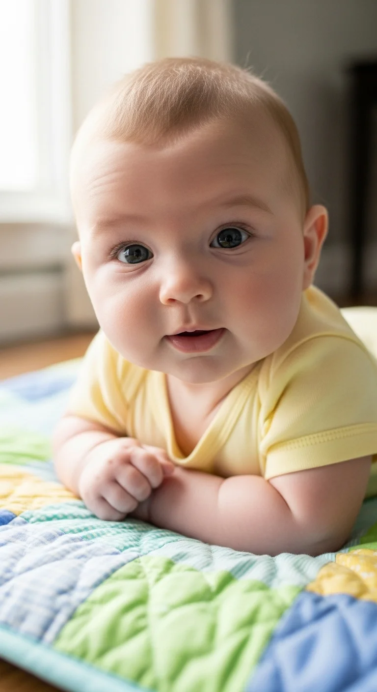 During the early weeks, babies begin lifting their heads for brief moments. Keep tummy time short and relaxed. A rolled towel under the chest helps them feel supported. Lie on the floor with them so they feel calm. You don’t need fancy mats—any clean blanket works. Make short sessions throughout the day instead of one long attempt. Talk softly or shake a simple rattle to keep their focus. If the floor feels cold, place another blanket underneath. Many parents like using a small mirror nearby since babies enjoy looking at shapes and movement. Keep expectations loose; some days they lift higher, other days they rest more. The goal is comfort, not performance. These tiny lifts build strength in the neck and shoulders over time.