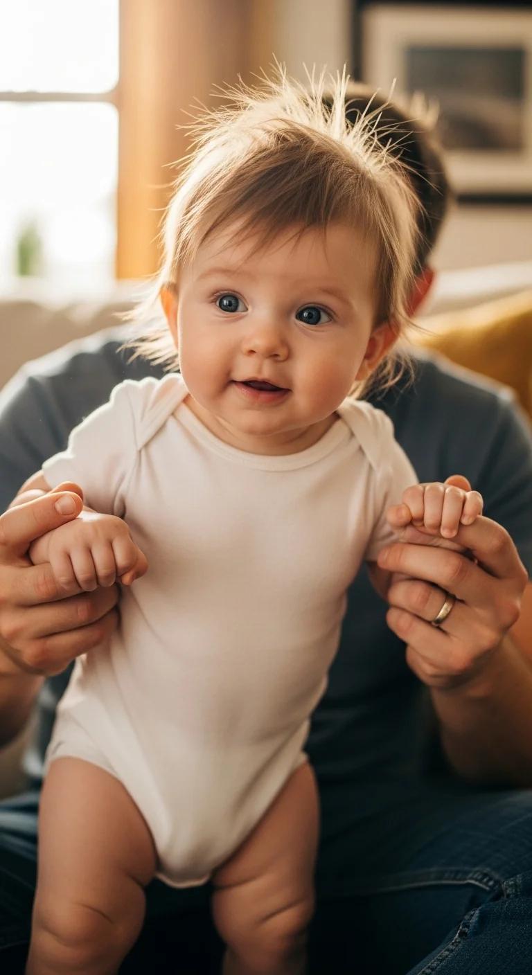 Hold your baby upright on your lap or against your chest. Let them bounce softly. Keep sessions brief. Avoid walkers—they aren’t needed and can be unsafe. A firm floor and your steady hands offer all the support required. Use songs or soft chatter to keep them relaxed. Allow breaks so their legs don’t tire. This gentle practice strengthens balance and confidence.