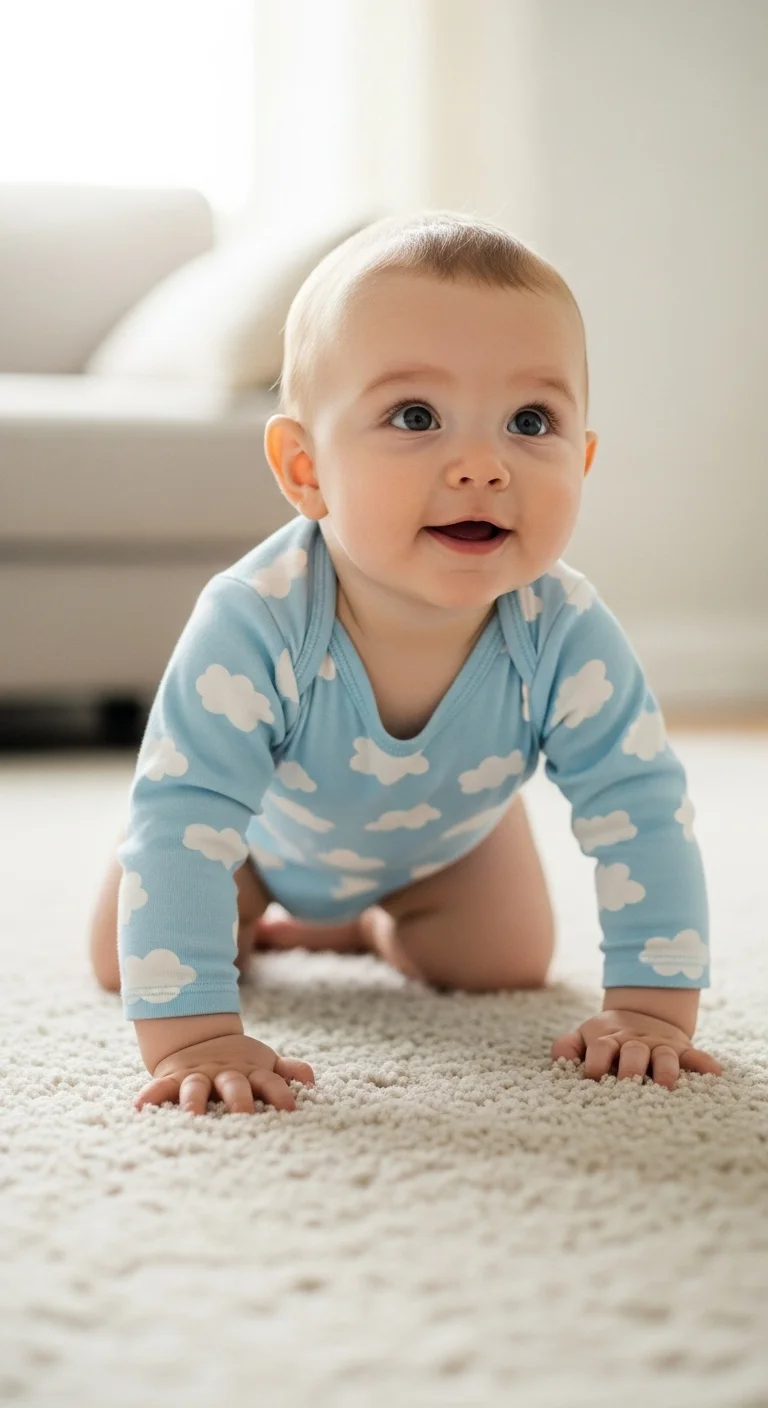 Crawling can start with rocking or scooting. Give your baby space on a clean floor. Lay toys a little out of reach. Avoid slick surfaces. A blanket or rug helps with traction. Let them explore the room safely while you stay close. You don’t need special crawling gear. Follow their pace and celebrate small movements. Even backwards crawling counts as progress.