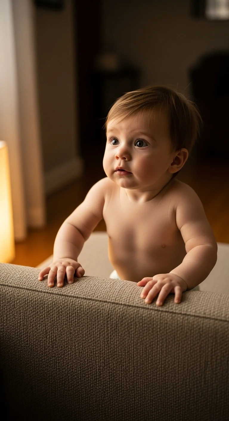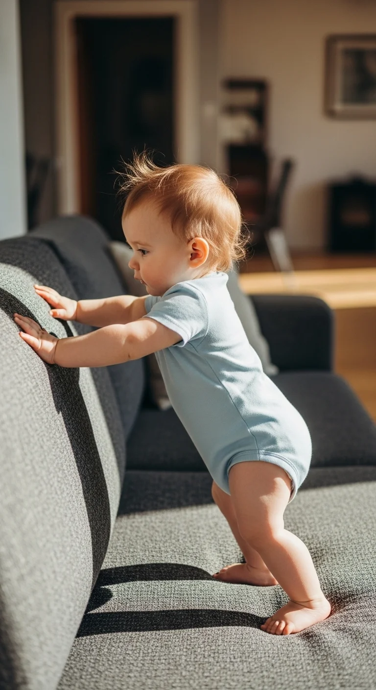 When babies pull up, they use furniture for support. Make the environment safe by choosing sturdy items. Remove sharp edges when possible. Place toys on stable surfaces so they’re encouraged to rise. Keep floors clutter-free to prevent slips. You can guide them gently at the hips. Rotate safe furniture pieces in the play area instead of buying new equipment.