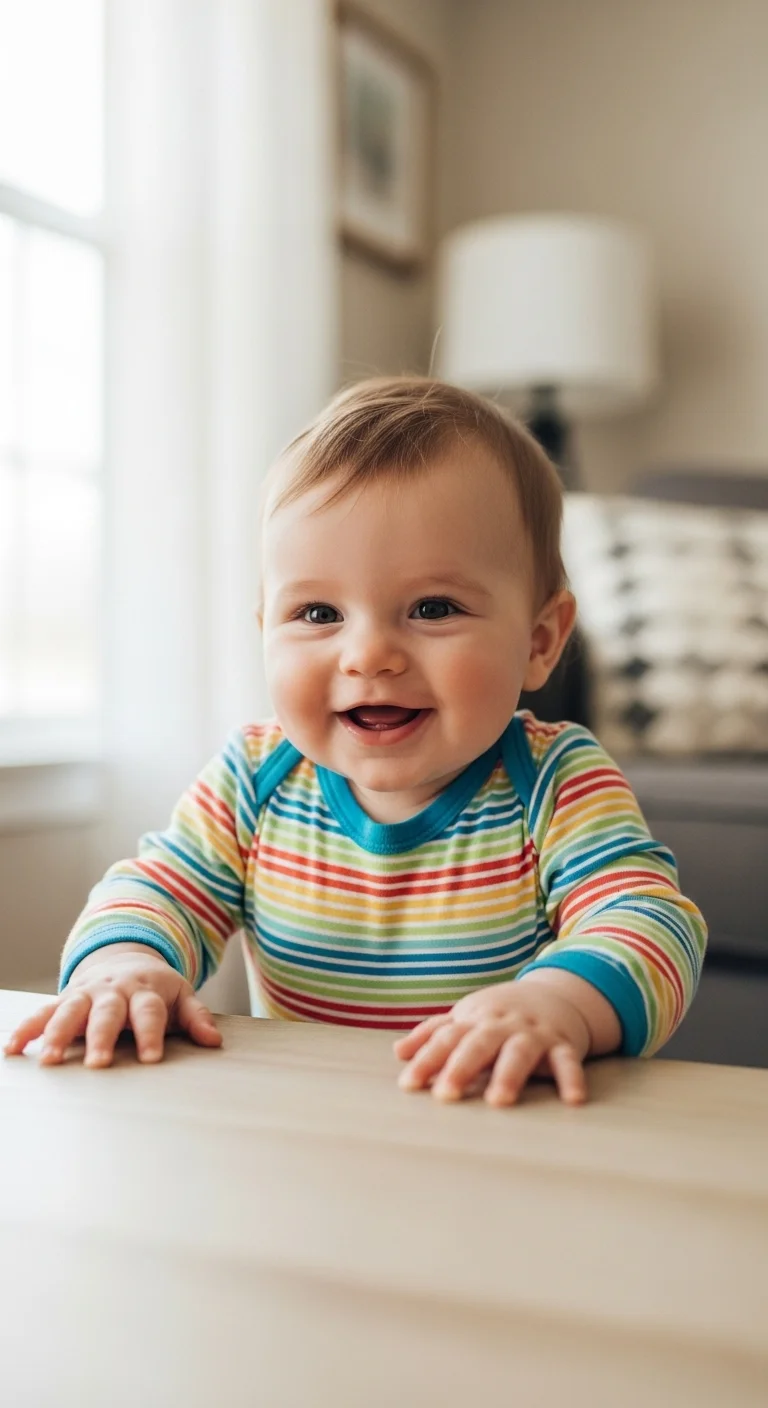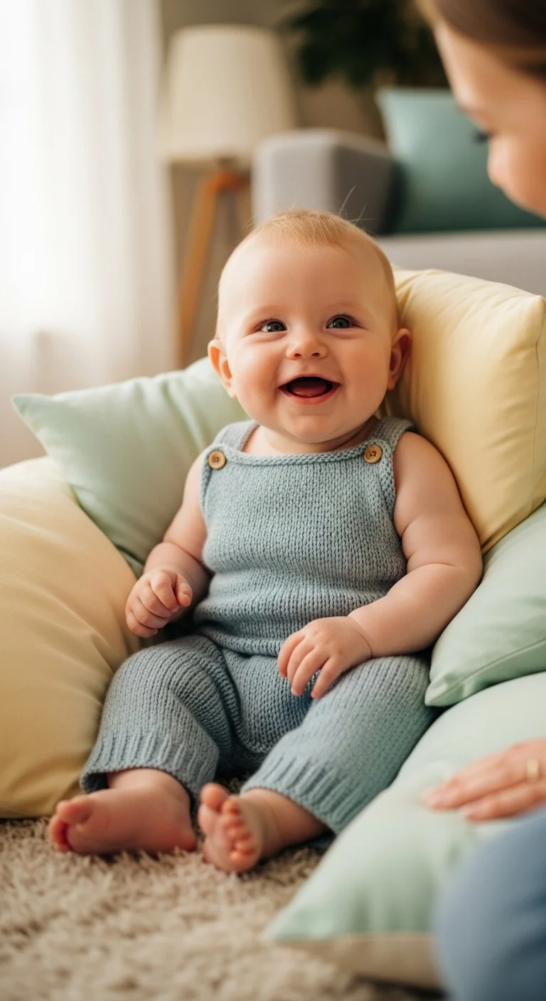 Babies laugh at simple moments—funny faces, gentle tickles, or silly noises. Keep things light and slow. Avoid overstimulation. Use everyday props like a soft cloth for peekaboo. A slow game often brings more giggles than fast movement. Laugh along to show them it’s shared fun. Watch for signs of fatigue and pause when needed. This milestone fits naturally into playtime without extra purchases.