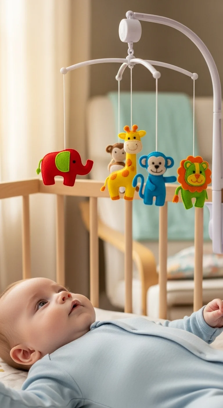 Babies soon start following simple objects with their eyes. Move a soft toy slowly from one side to the other. Keep the toy close so it’s easy to see. You don’t need expensive items—a wooden spoon or bright sock works too. Try this while your baby is calm, not hungry or tired. Short sessions help them stay interested. Sit face-to-face and smile so they connect your voice with what they’re watching. If they stop following, pause and try again later. Keep movements slow and gentle. This small activity can become part of playtime without any special setup. You’ll notice their tracking gets smoother with practice.