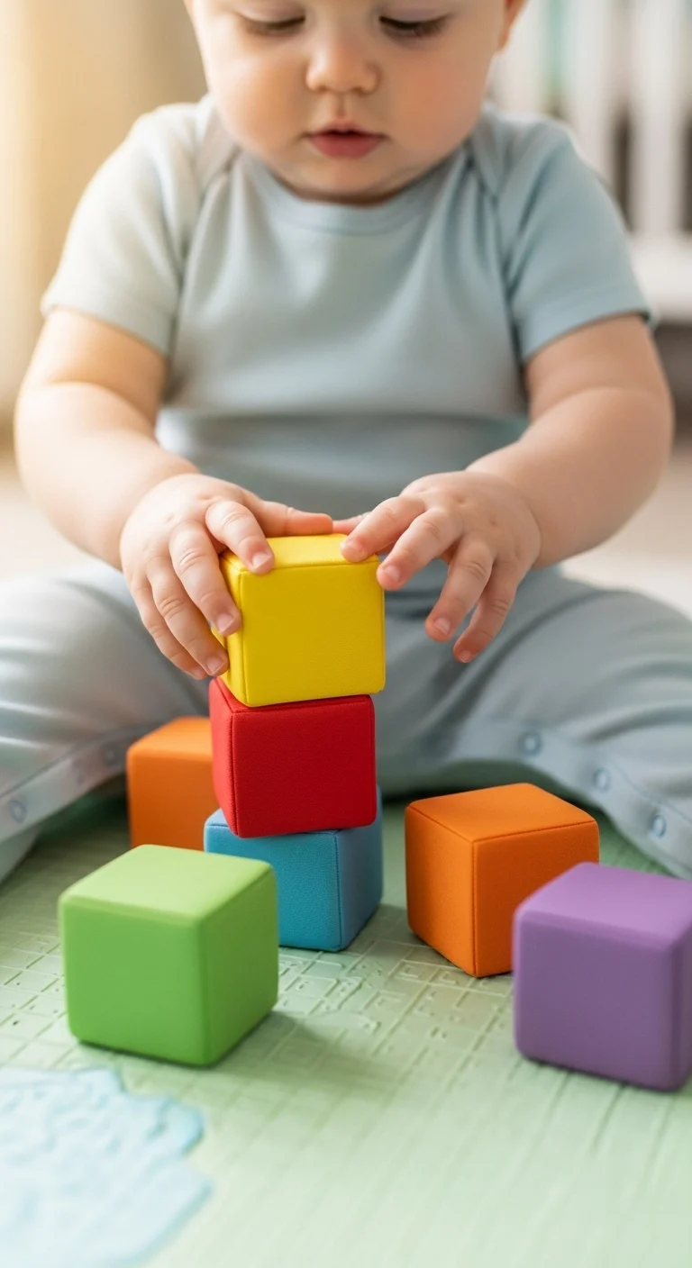 Use soft blocks or plastic cups. Start with two pieces and let them try stacking. Keep the activity light. Sit on the floor with them so drops don’t scare them. You don’t need fancy sets—kitchen containers work too. Celebrate each attempt. Rotate objects so they stay curious.