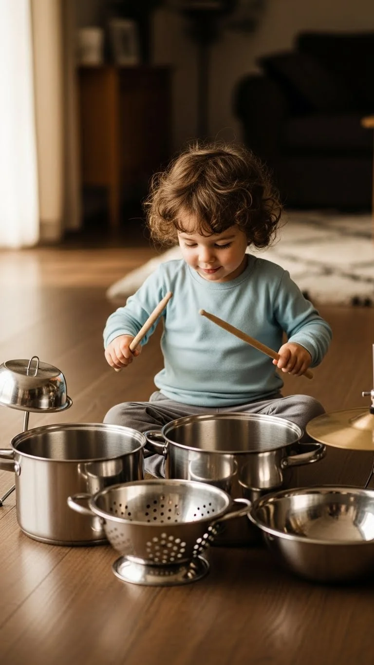 Turn old pots and spoons into a mini band. Set everything on the floor and let kids tap, roll, and thump to their own beat. Keep it playful by adding plastic containers or lids for different sounds. If the noise feels too loud, move the “band” to a rug or blanket. Kids enjoy experimenting with rhythms and swapping instruments. They often repeat patterns without thinking, which helps them stay busy for long stretches. You don’t need to guide the play—just offer a few items and step back. A cardboard tube becomes a “microphone,” and a mixing bowl turns into a “drum.” Invite kids to create a short “song,” then record it on your phone for them to hear later. The setup costs nothing and uses things already in the house. When finished, everything goes right back into the kitchen cabinet.