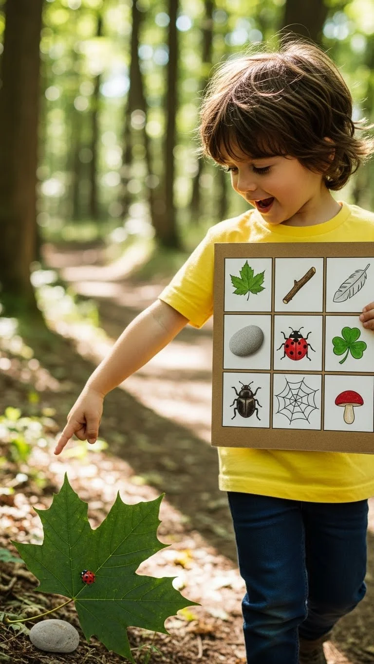 Create a quick bingo card with drawings of simple outdoor finds. Add items like a smooth rock, a yellow leaf, a bird, or a stick shaped like a “Y.” Kids love walking around checking off each square. Keep the walk slow so they have time to spot everything. A park, sidewalk, or backyard all work. Use a clipboard or piece of cardboard as a backing so the card doesn’t tear. Kids often get excited when they find something unusual, like a tiny feather. If they complete the card, let them turn it over and draw their own. This extends the fun without extra supplies. The walk stays relaxed, and kids stay focused on exploring. The card becomes a fun keepsake or a reusable outline for next time.