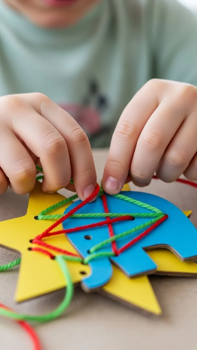 Cut shapes from cardboard—circles, animals, stars, anything you’d like. Punch holes around the edges with a pen or hole punch. Give kids yarn with tape wrapped around one end so it’s easy to thread. They can loop the yarn in and out at their own pace. This activity helps them settle into a calm rhythm. It’s simple, low-cost, and keeps hands busy. Offer a few shapes with different hole patterns to keep interest high. Kids often decorate their cards with crayons or stickers after sewing. If the yarn gets tangled, cut a fresh piece and keep going. Store the cards in a small bag so kids can come back anytime. The repetition feels relaxing and fills quiet moments throughout the day.