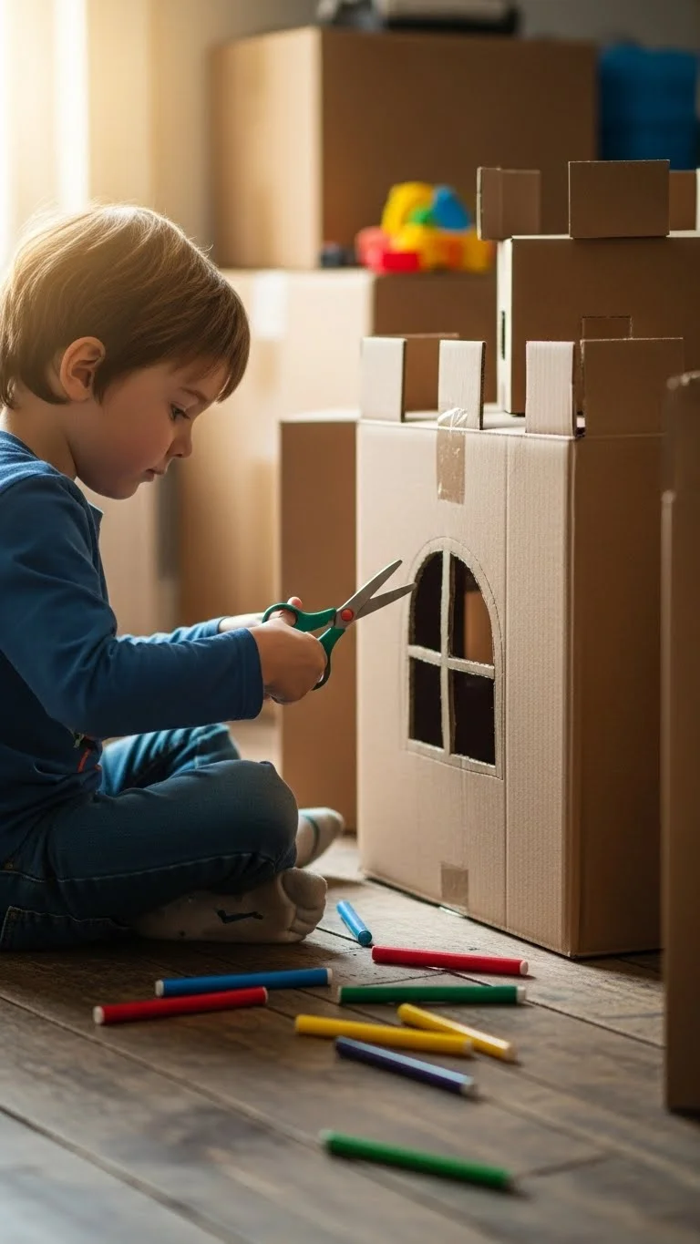 Save large boxes from deliveries and let kids turn them into whatever they imagine. A spaceship, kitchen, puppet theater, or animal shelter can all start with one big box. Give them crayons, tape, and scissors suited for kids. Skip high-cost supplies. Even a paper plate taped on top can become a “satellite dish.” The magic comes from letting them shape the box their way. Encourage them to crawl inside and add small decorations. They can also attach smaller boxes to create rooms. If you have leftover wrapping paper, use it to line the inside. This simple setup keeps kids absorbed for long periods because they keep thinking of new details to add. Cleanup stays easy too. When they’re done, flatten the box and save it for another day. Kids usually enjoy rebuilding something new each time.