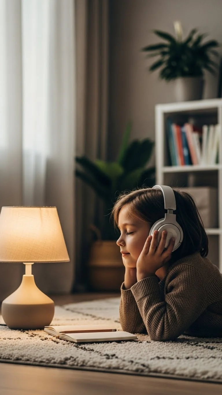Music has a powerful effect on mood and can help anxious children reset quickly. Choose calm songs with a steady rhythm, gentle instruments, or nature sounds. Sit or lie down together and listen quietly for a few minutes. Keep sessions short and relaxed. Five minutes is often enough to-create a shift. You can ask your child how their body feels before and after, but keep it casual and pressure-free. Free playlists or radio stations work well—no special equipment is needed. Let your child help choose the music so they feel involved. Avoid intense lyrics or fast beats. Over time, children learn which sounds help them feel calm. This builds a simple coping skill they can use anytime stress appears.
