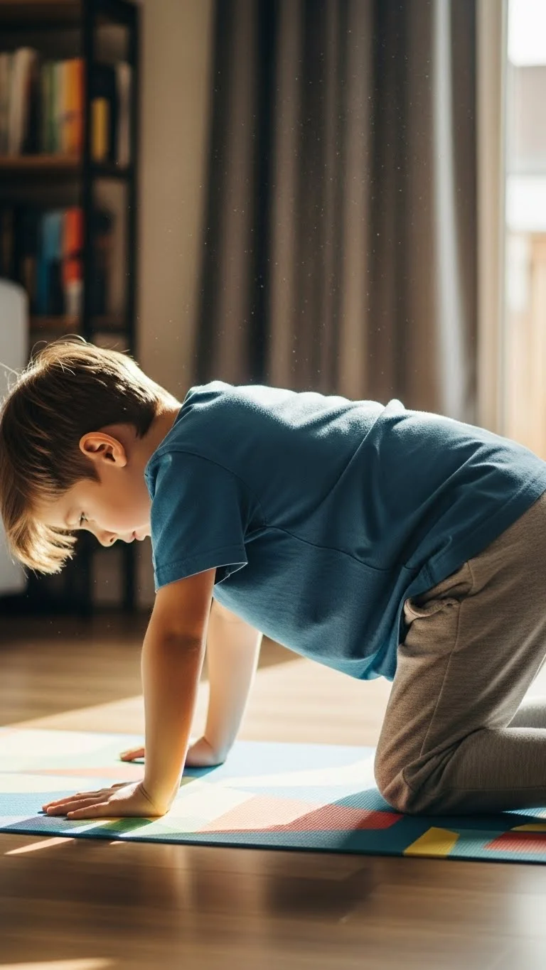 Gentle stretching helps release physical tension that often comes with anxiety. Choose just two or three easy poses and keep the session short. Animal-themed stretches like cat, dog, or star pose make movement feel fun and accessible. You don’t need special equipment. A carpet or soft floor works fine. Stretching together increases comfort and connection. Encourage slow breathing while moving, but avoid strict instructions. This activity works well in the morning, after school, or before bed. Movement helps anxious energy settle naturally. Over time, children begin to notice how their body feels and learn that stretching can help them calm down. Simple yoga builds both physical awareness and emotional regulation.