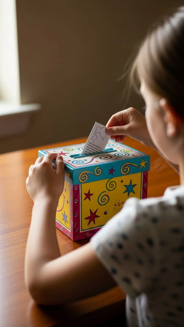 A worry box gives children a place to put anxious thoughts instead of holding them inside. Decorate a small box together using simple materials. When a worry appears, write it down or draw it and place it inside. Closing the lid creates emotional distance. The worry has a home outside the mind. Use scrap paper to keep it low-cost. Set a weekly time to open the box together, if the child wants. Many worries feel smaller after time has passed. This ritual teaches kids that worries don’t need constant attention. Over time, children gain a sense of control and learn that thoughts can come and go without taking over.