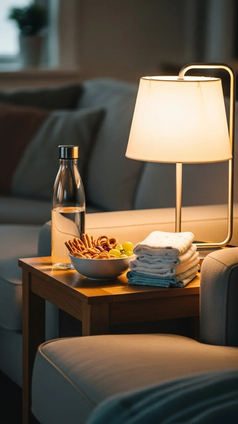A feeding station can save time and energy. Pick one spot where you often feed your baby. Add water, snacks, burp cloths, and a phone charger. Keep it simple. A small basket works fine. This way, you won’t keep getting up while holding a sleepy baby. Budget tip: Use items you already have. A shoebox can hold snacks. A scarf can work as a light blanket. You don’t need special furniture. This small setup can make long feeding sessions calmer. It also helps you stay hydrated and fed, which matters during this stage. Small comforts can change long nights.