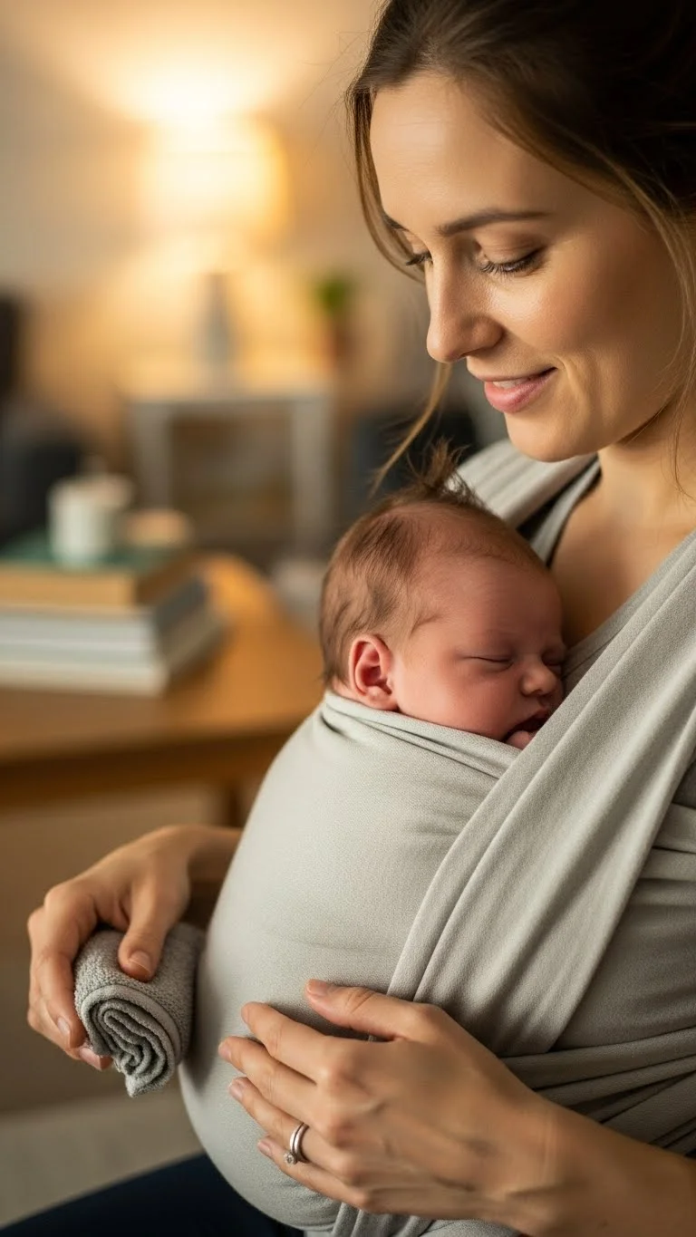 Wearing your baby can make daily life feel far more manageable during the early weeks. Newborns crave closeness, warmth, and the steady rhythm of your body. When you wear your baby in a soft wrap or carrier, they feel safe and soothed—while your hands are free to do small, simple tasks. You might make tea, step outside for fresh air, or gently tidy one corner of the room. Babywearing can be especially helpful when your baby is fussy or won’t settle. The gentle movement, your scent, and your heartbeat can calm them faster than anything else. It can also help reduce crying and encourage longer naps. You don’t need an expensive carrier. Many parents borrow, buy secondhand, or receive one as a hand-me-down. Practice using it when you’re calm so you feel more confident later.