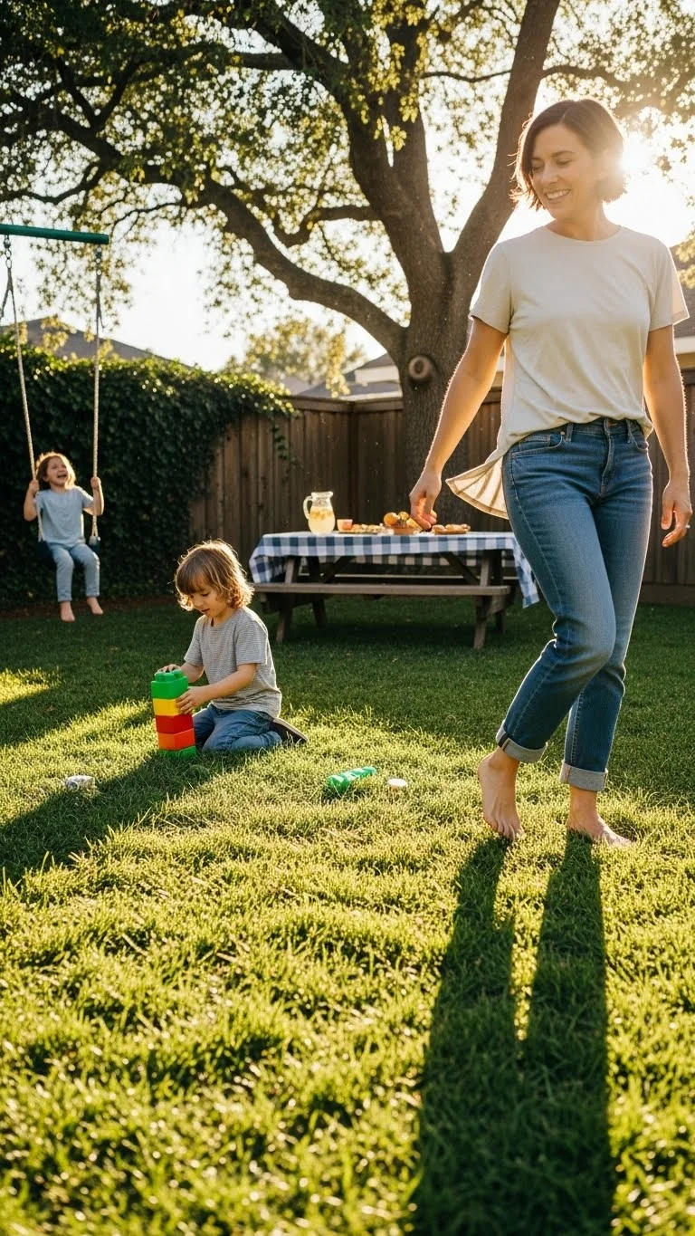 Spending time outside, even briefly, can ease parenting stress more than most people expect. Fresh air helps your nervous system reset. Natural light improves mood and energy. Open space gives your eyes and mind a break from walls, mess, and noise. You do not need a long walk or special outing. Step onto the balcony. Stand in the yard. Walk to the end of the street and back. Let your shoulders relax while you breathe in deeply. Notice small details like clouds, trees, or the feel of the ground under your feet. Children benefit too, but this habit is for you first. Outdoor moments remind your body that it is safe to slow down. Even five minutes can reduce tension. Make it part of your daily rhythm, not another task to perfect. Consistent exposure to daylight and open air supports calmer reactions and steadier emotions throughout the day.